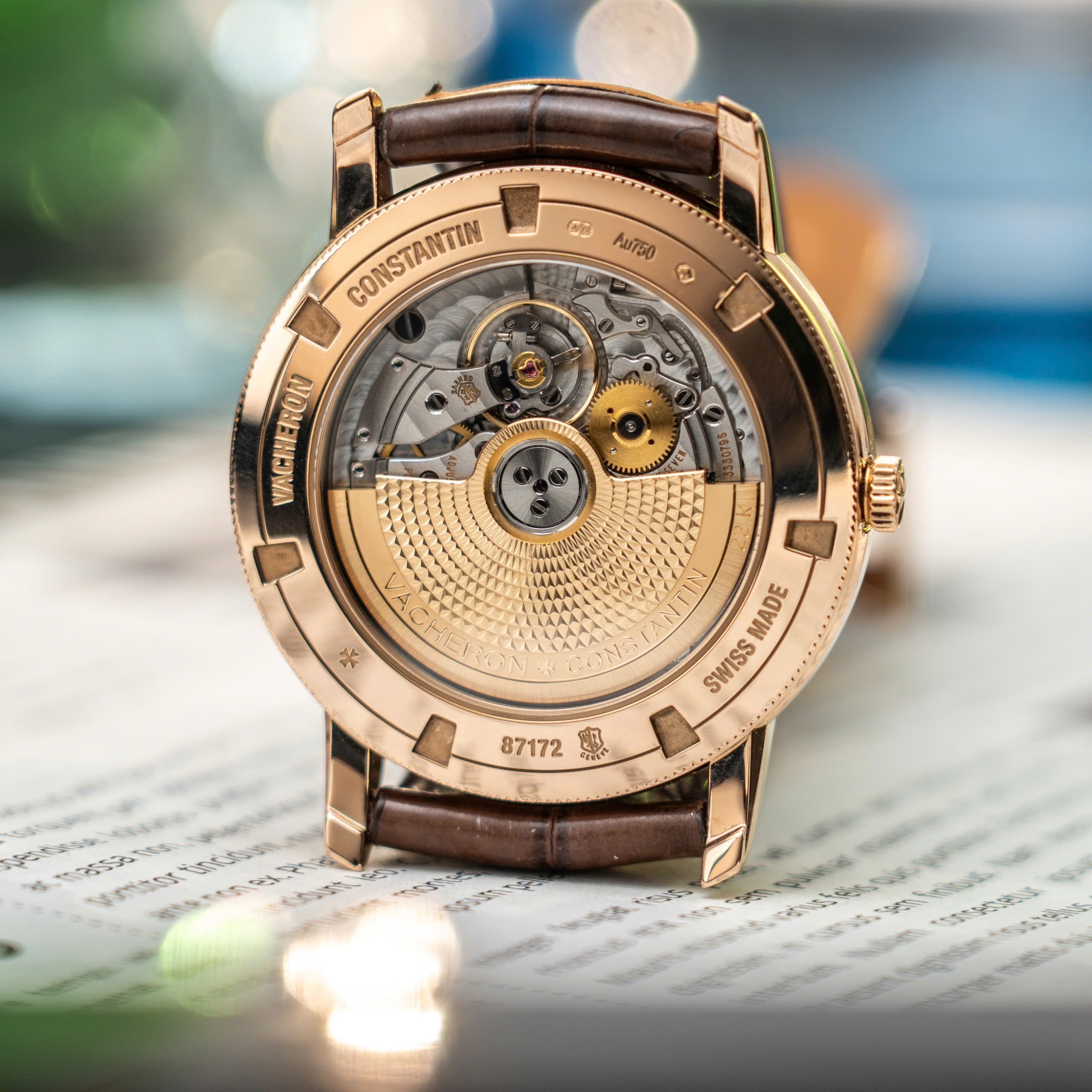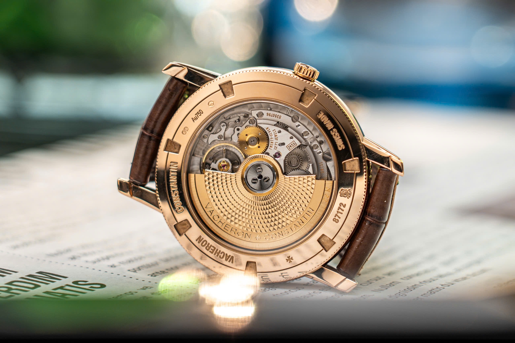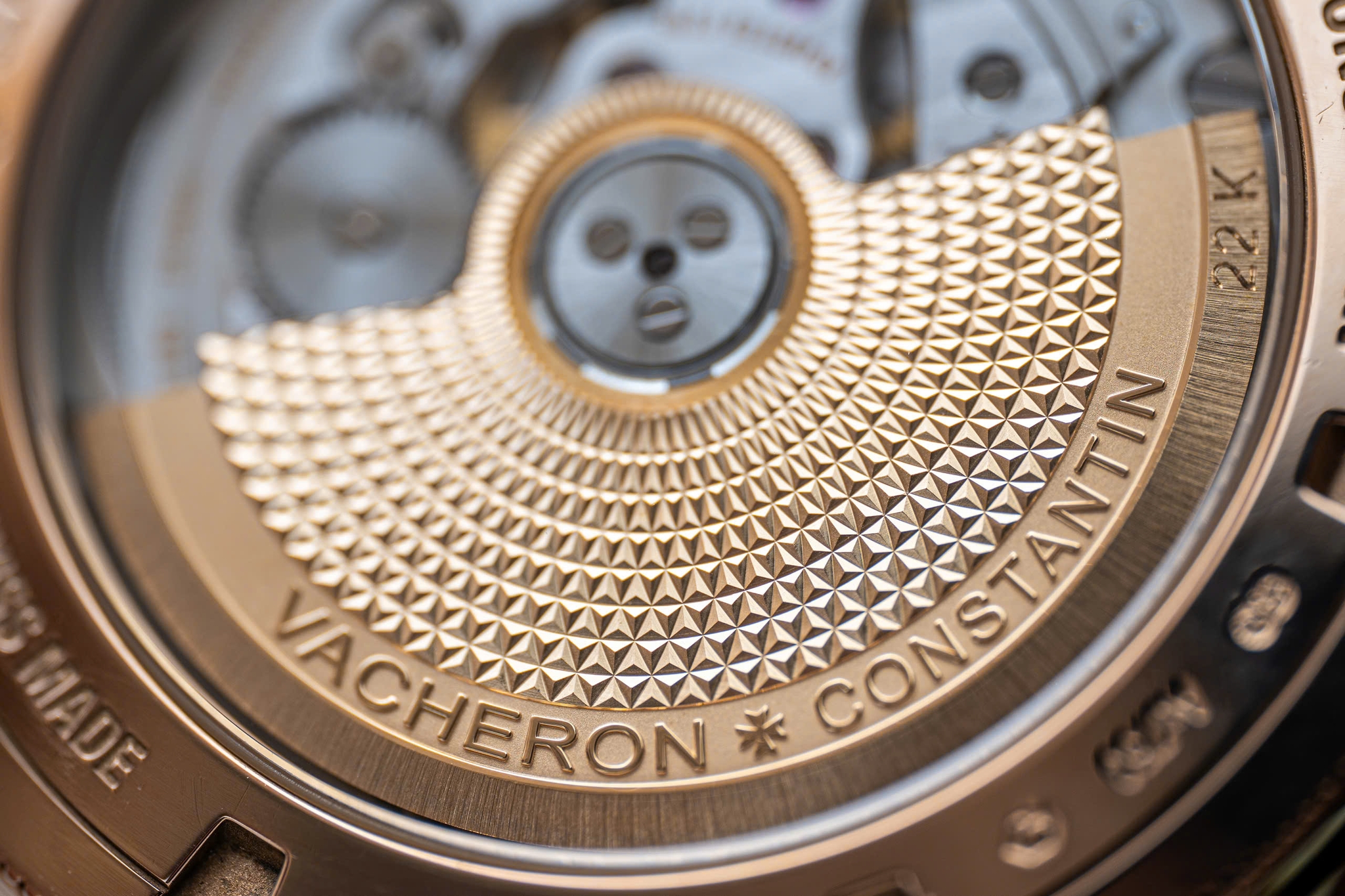 Bộ máy của Vacheron Constantin Traditionnelle Ref. 87172/000R-9302 được hãng chế tác dựa trên tiêu chuẩn Haute Horlogerie, áp dụng những phương pháp hoàn thiện cơ khí truyền thống một cách tỉ mỉ. Một trong những điểm nổi bật là bánh xe lên cót (winding wheel) – chi tiết chịu trách nhiệm truyền năng lượng từ thao tác vặn núm (hoặc rotor, nếu là automatic) đến toàn bộ cơ cấu bộ máy. Trong phiên bản Traditionnelle này, răng của bánh xe lên cót được vát cạnh và đánh bóng, đạt đến độ phản chiếu ấn tượng, đồng thời thể hiện kỹ thuật chạm khắc và xước mịn vốn đặc trưng của Vacheron Constantin.