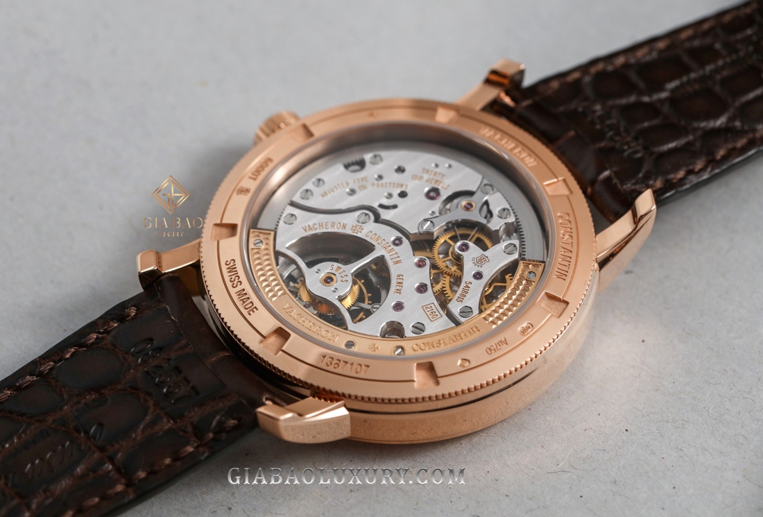 Chi tiết này tuy nhỏ nhưng lại có hiệu quả đáng kể trong việc giảm đi trọng lượng của bộ vỏ vàng cũng như làm thu hẹp kích thước đồng hồ. Một chi tiết thể hiện vẻ đẹp tinh tế trên chiếc Vacheron Constantin Traditionnelle Tourbillon hiện tại là phần mặt đáy được vặn chặn không để lộ ra những đinh ốc, tăng tính thẩm mỹ hơn nhiều.