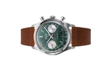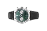 Đồng hồ đeo tay thương hiệu Vulcain, dòng sản phẩm Chronograph, Ref no: 640109A90.BAC201, mặt số màu xanh lá cây size 38mm, máy lên cót tay, vỏ đồng hồ thép không gỉ 316L, dây da bê đen, hàng mới 100%