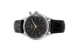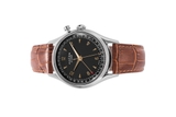 Đồng hồ đeo tay thương hiệu Vulcain, dòng sản phẩm Cricket Tradition, Ref no: 100168A06, mặt số màu đen, size 39mm, máy lên cót tay, vỏ đồng hồ thép không gỉ, dây da cá sấu, hàng mới 100%