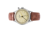 Đồng hồ đeo tay thương hiệu Vulcain, dòng sản phẩm Cricket Tradition, Ref no: 100168A76, mặt số màu vỏ trứng, size 39mm, máy lên cót tay, vỏ đồng hồ thép không gỉ, dây da cá sấu, hàng mới 100%