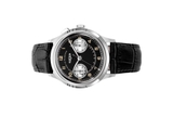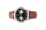 Đồng hồ đeo tay thương hiệu Vulcain, dòng sản phẩm Monopusher Heritage, Ref no: 650157A08, mặt số màu đen size 38.9mm, máy lên cót tay, vỏ đồng hồ thép không gỉ 316L, dây da bê, hàng mới 100%