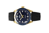 Đồng hồ đeo tay thương hiệu Vulcain, dòng sản phẩm Skindiver, Ref no: 661170A37, mặt số màu xanh dương size 38mm, máy tự động, vỏ đồng hồ bằng vàng vàng 18k, dây da bê, hàng mới 100%