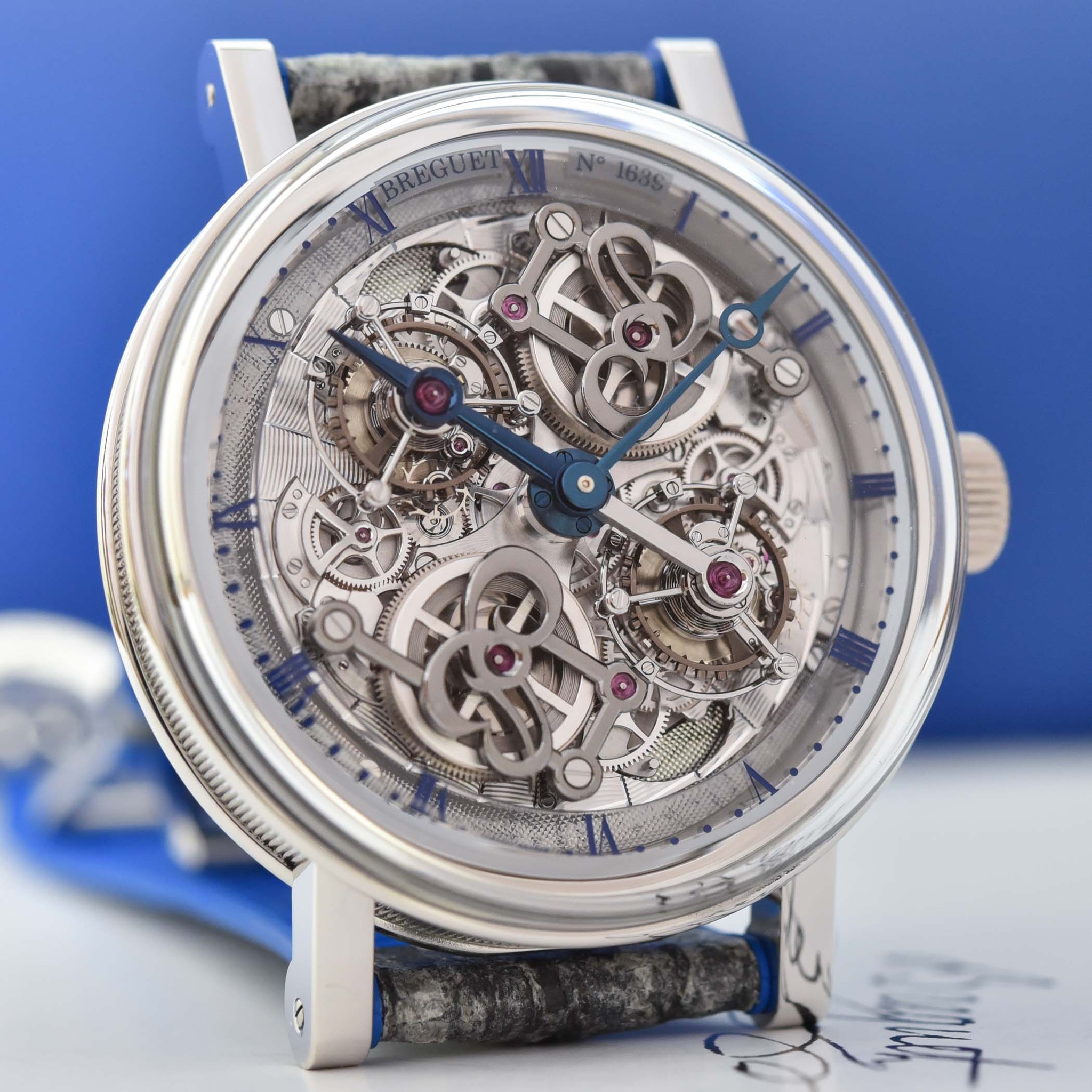 Thông tin nhanh về Breguet Classique Double Tourbillon 5345 Quai de l'Horloge: Vỏ bạch kim 46mm; bộ máy lên cót tay caliber 588N, trữ cót 50 giờ. Giá: 628.000 CHF.