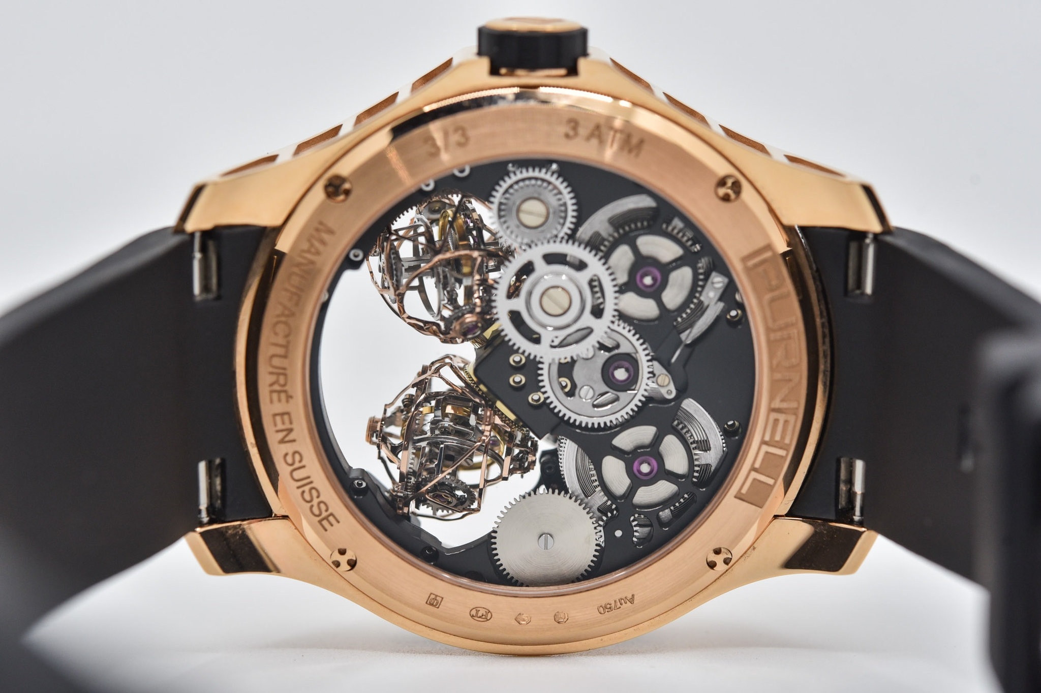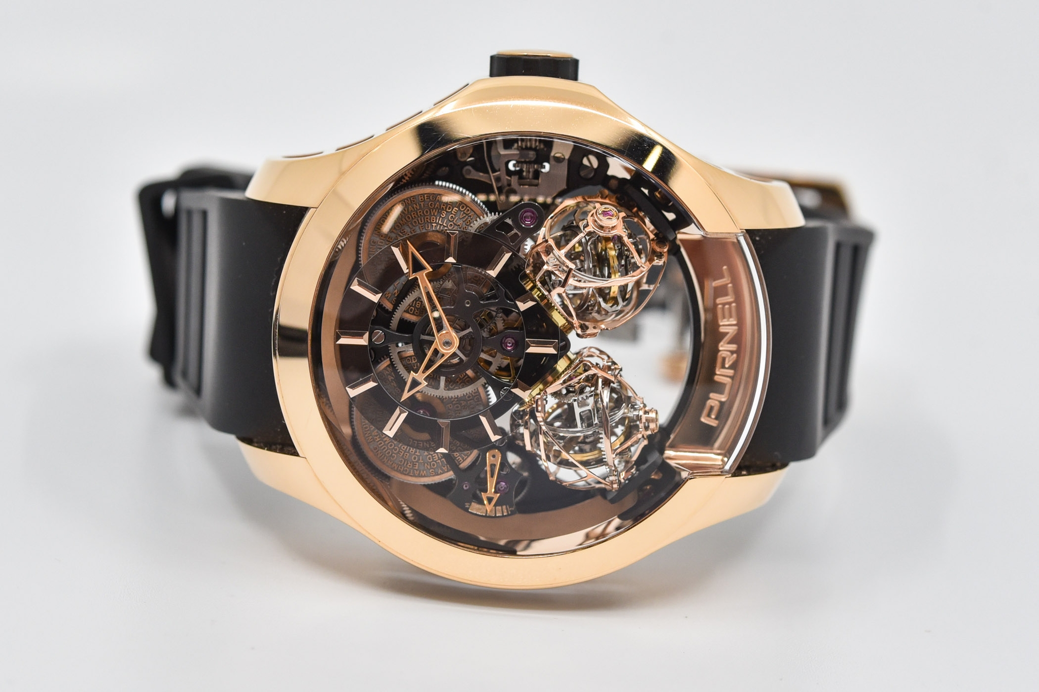 Được gọi là con quái vật trên cổ tay, Purnell Escape II gây ấn tượng với công chúng bằng bộ đôi tourbillon quay 3 trục theo các hướng khác nhau. 3 lồng cấu thành nên tourbillon của Purnell Escape II quay trong vòng 8, 16 và 30 giây. Khi được lên cót toàn bộ, 4 hộp cót của Purnell Escape II sẽ xoay trong vòng 32 giờ.