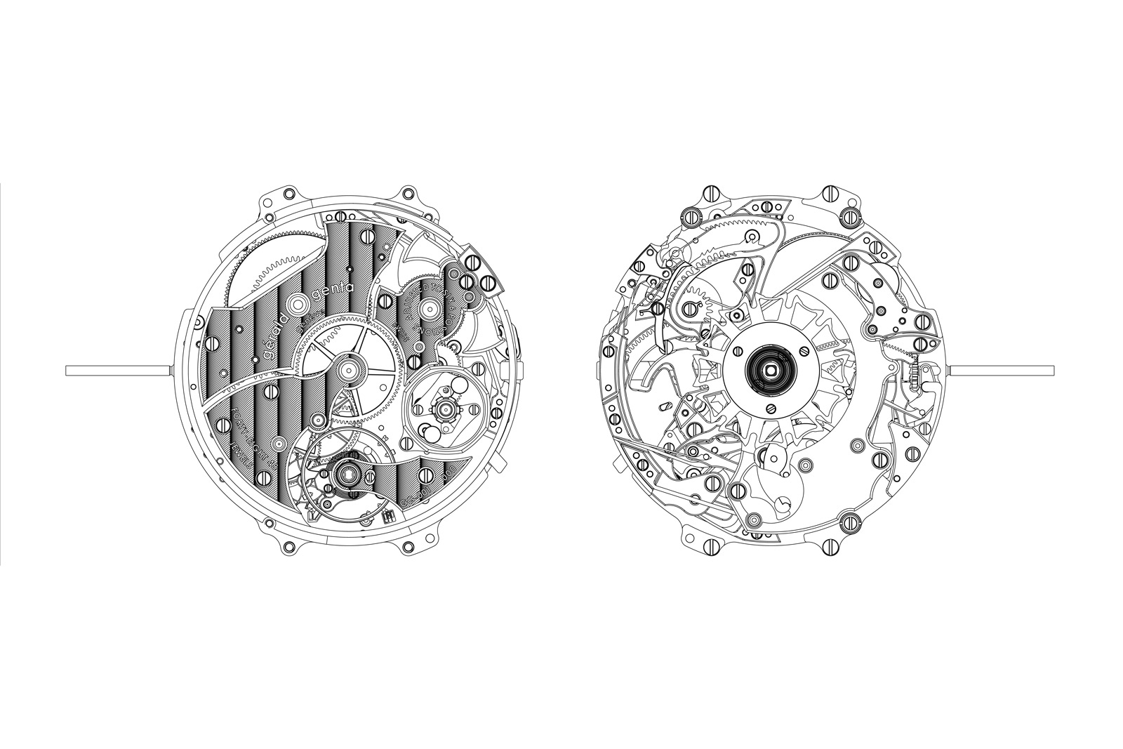 Các thợ chế tác đã dựa vào một bộ máy có sẵn tại xưởng La Fabrique du Temps mà cả Louis Vuitton đến Laurent Ferrier đều đã từng sử dụng. Bộ máy này tiếp tục được nâng cấp để có thêm chức năng phút bật ngược, giờ nhảy kết hợp với điểm chuông. Được biết, thêm vào cơ chế giờ nhảy hay phút bất ngược là quy trình khó khăn hơn so với điểm chuông. Khó khăn ở chỗ là phải ngăn chặn toàn bộ tổn hại cho bộ máy đồng hồ nếu đồng loạt các hành động như điểm chuông, chỉnh giờ được thực hiện cùng lúc.