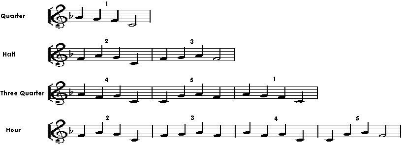 Giai điệu Westminster được tạo ra bởi bốn búa gõ vào chuông lớn từng nhịp trên đồng hồ Hermle