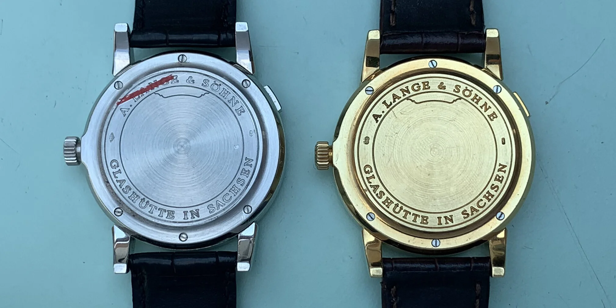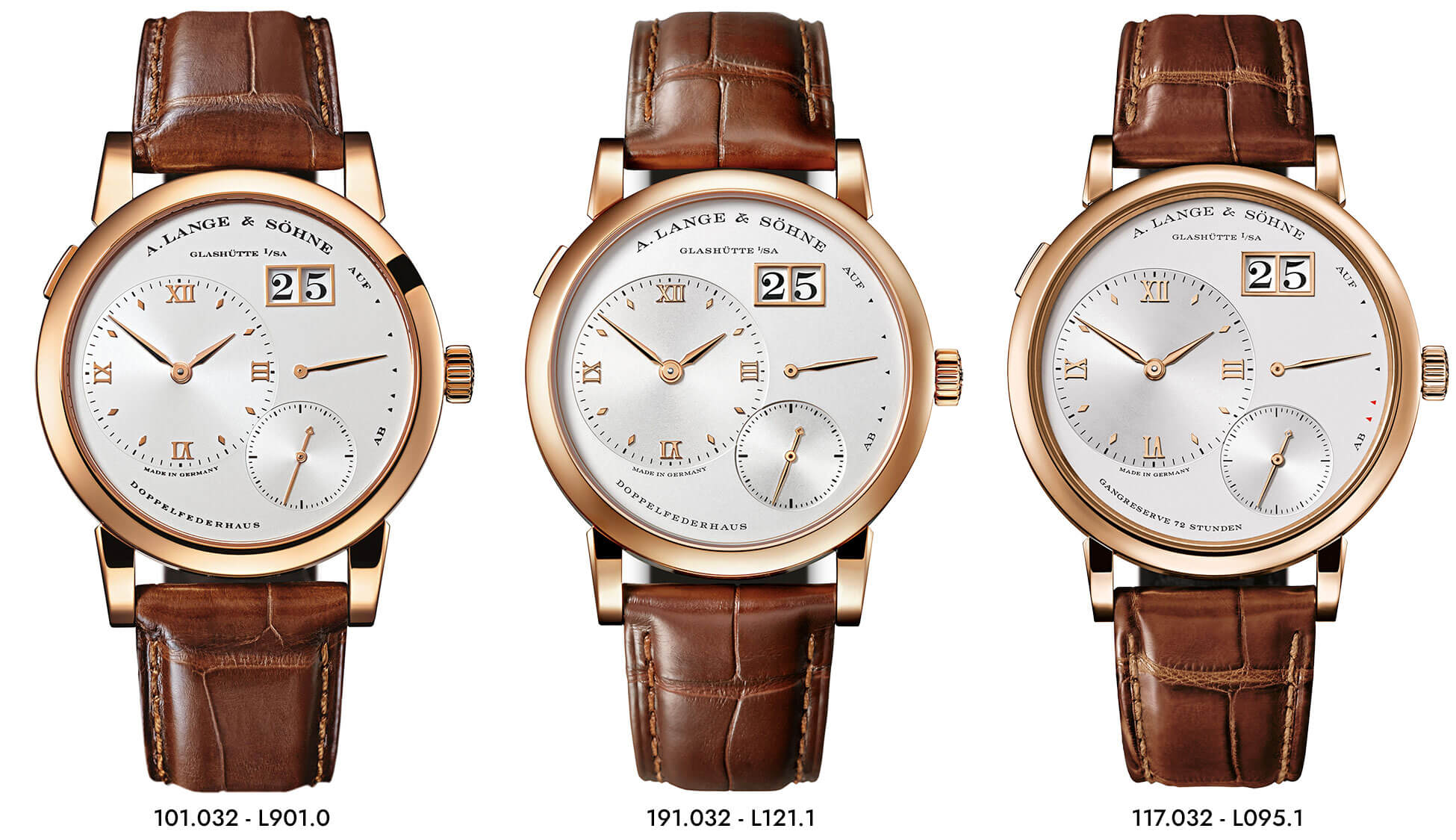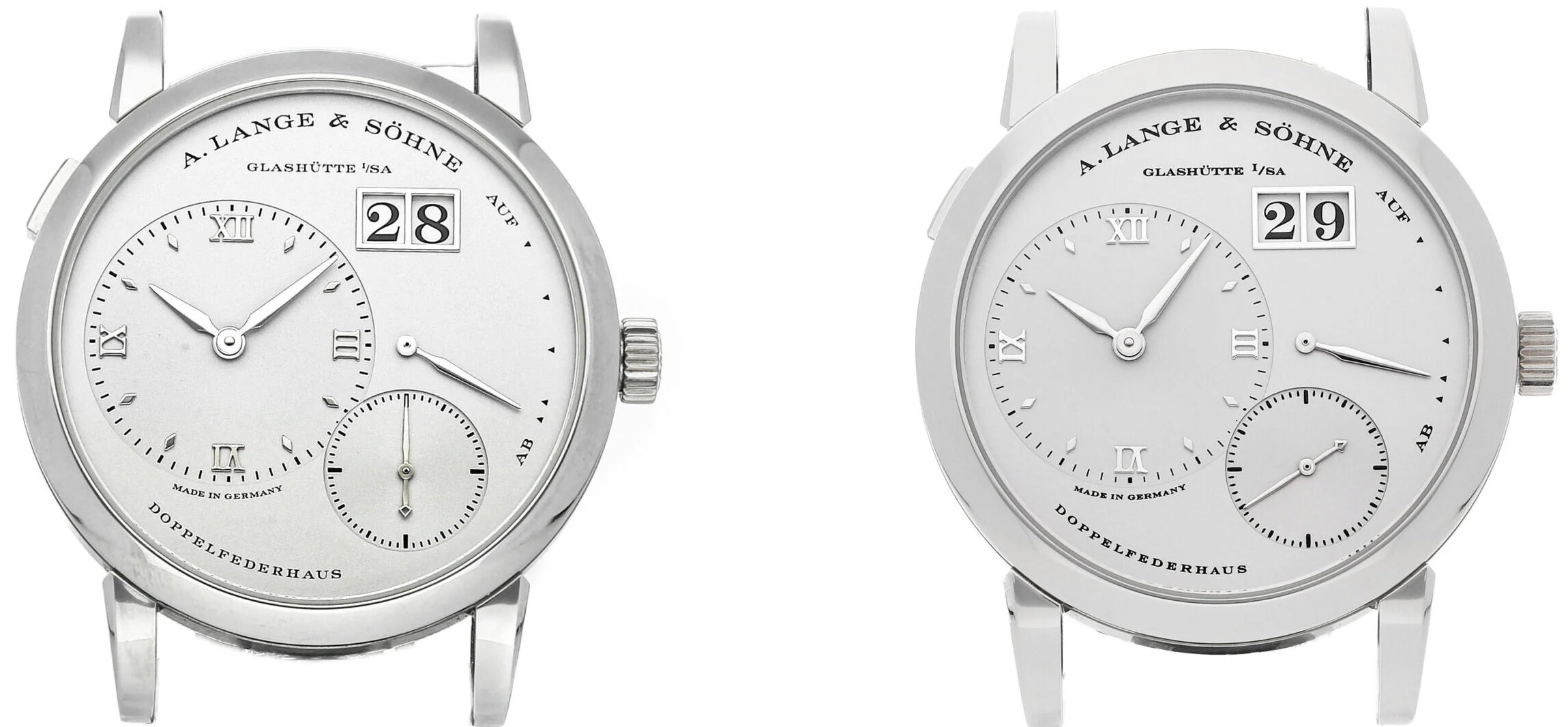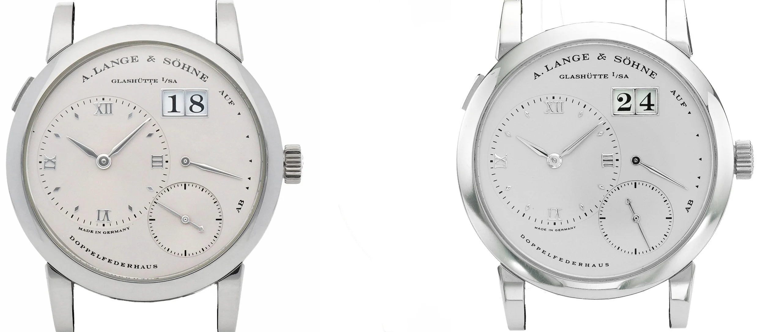 Hình ảnh: Lange 1 tham chiếu 191.025 (thế hệ 2) bên trái, so với 101.025 hế hệ đầu bên phải.