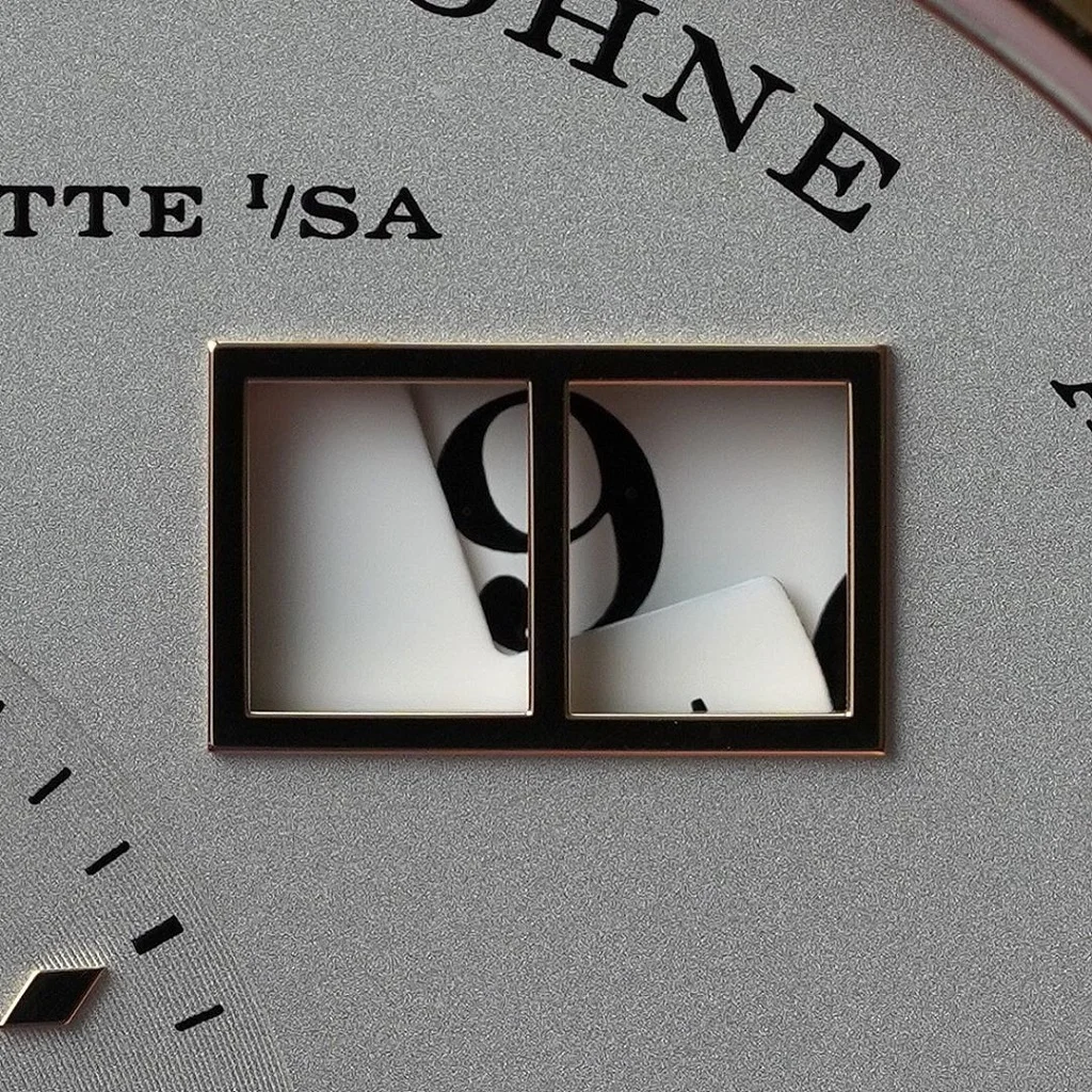 Tính năng “Big Date” (lịch ngày cỡ lớn) cũng là minh chứng tiêu biểu cho việc A. Lange & Söhne “pha trộn” truyền thống với hiện đại. Nguyên bản đây là phát minh của Jaeger-LeCoultre (công ty “chị em” với A. Lange & Söhne), nhưng Günter Blümlein đã mang nó đến Glashütte, kết hợp với yếu tố lịch sử: chiếc đồng hồ 5 phút ở nhà hát Semper, nơi thầy Gutkaes của F.A. Lange từng chế tạo. Lange 1 và Big Date gần như gắn liền với nhau, biểu trưng cho bước chuyển từ “di sản” sang “hiện đại.”