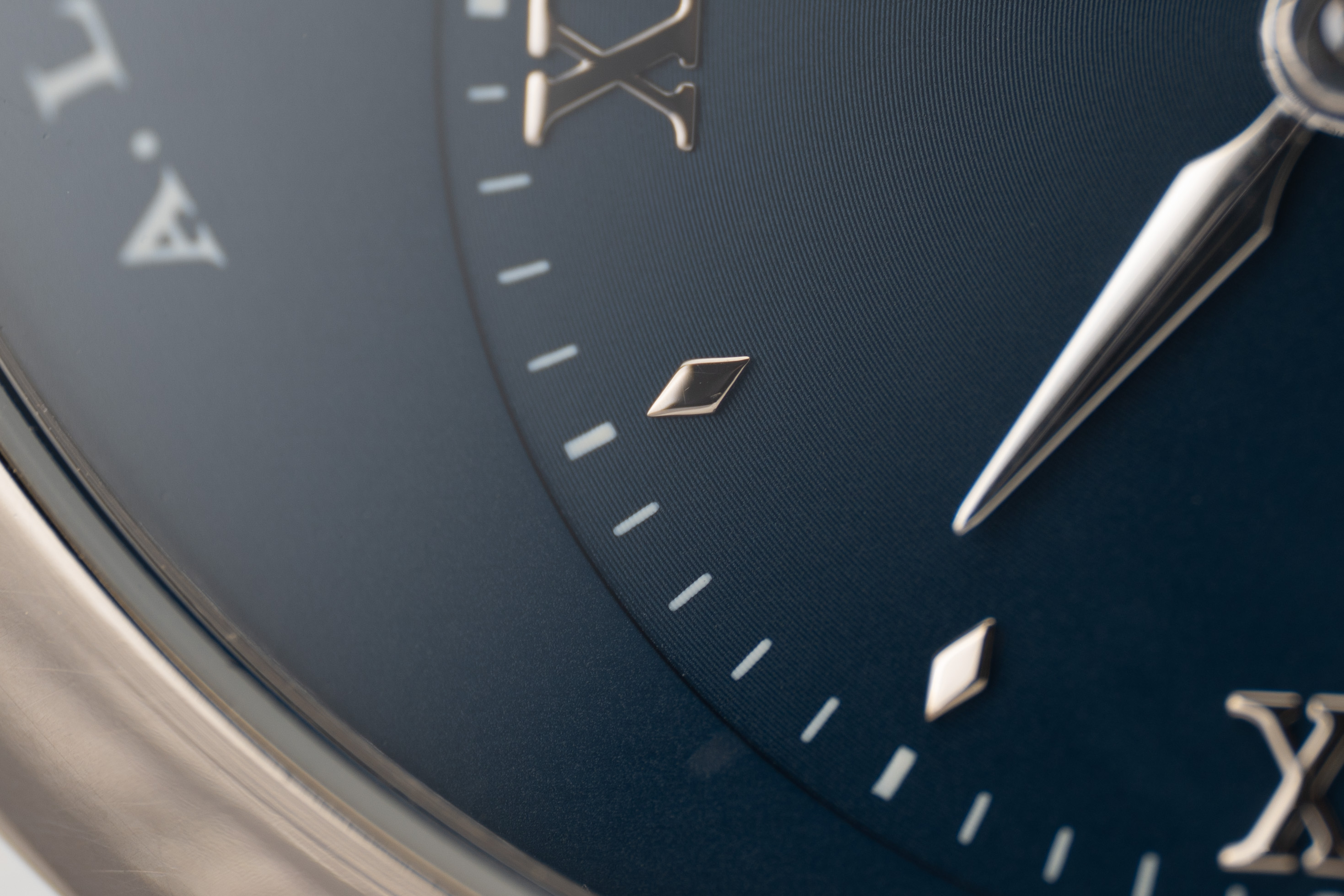 Mặt số chính có bề mặt nhám, trong khi các mặt phụ (sub-dial) được hoàn thiện dạng vòng tròn đồng tâm. Theo nghiên cứu của @thewindingstem và @handwound, mặt số giờ-phút chứa đến 153 vòng tròn siêu mảnh.