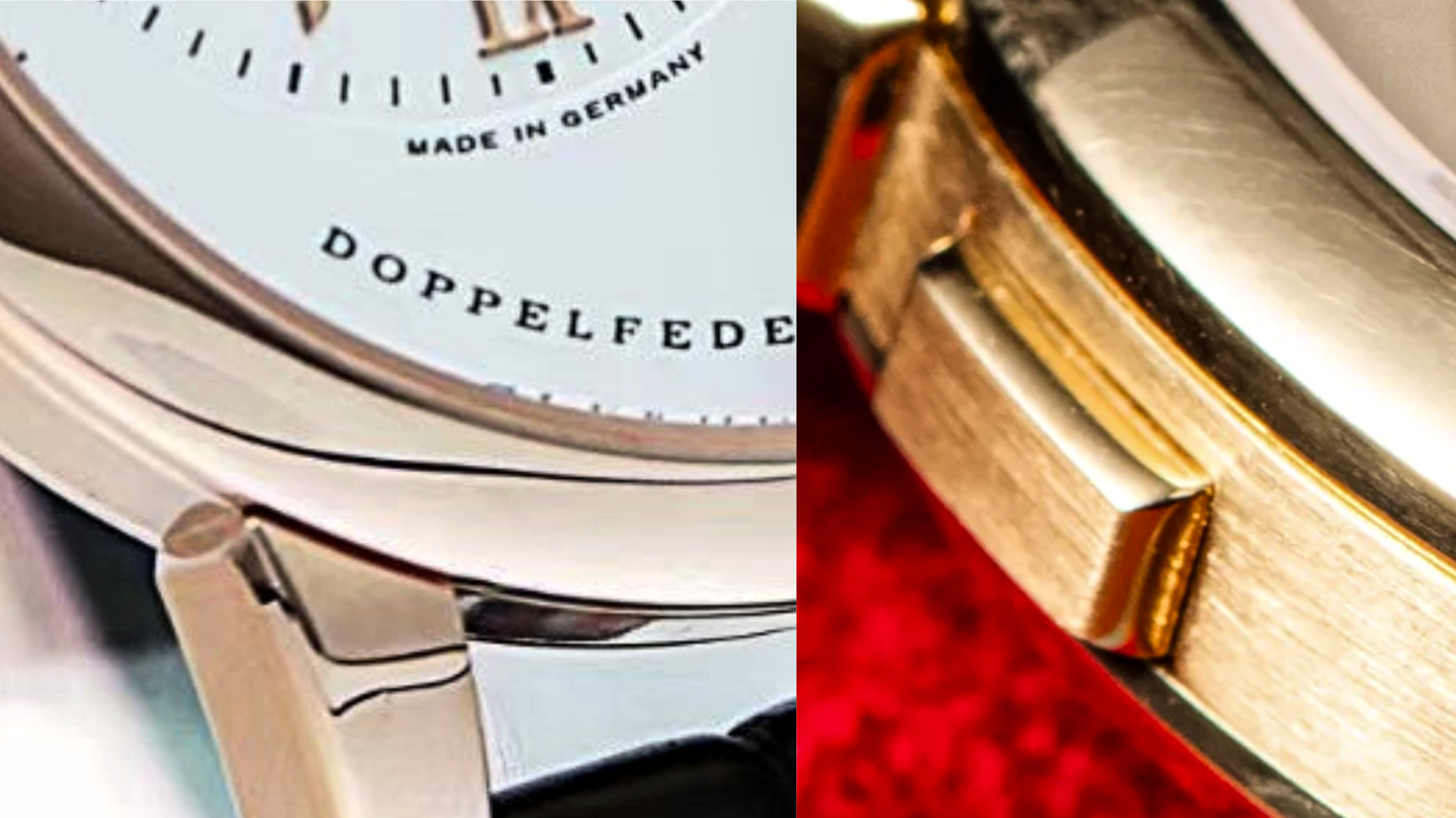Dấu hiệu nhận biết vỏ Lange nằm ở chỗ chấu càng (lug) có khấc và góc vát riêng, mỗi chi tiết được hoàn thiện rời rạc rồi mới lắp ghép. Đây là điểm nhấn vừa kín đáo, vừa ấn tượng, giúp nhận ra đồng hồ Lange mà không phô trương. Ý tưởng này bắt nguồn từ Günter Blümlein. Theo một số nhân viên lâu năm của A. Lange & Söhne, chính Blümlein từng tự tay tạo phần khấc trên mẫu đồng thau thử nghiệm – một thông tin thú vị được SJXwatches.com nhắc đến.