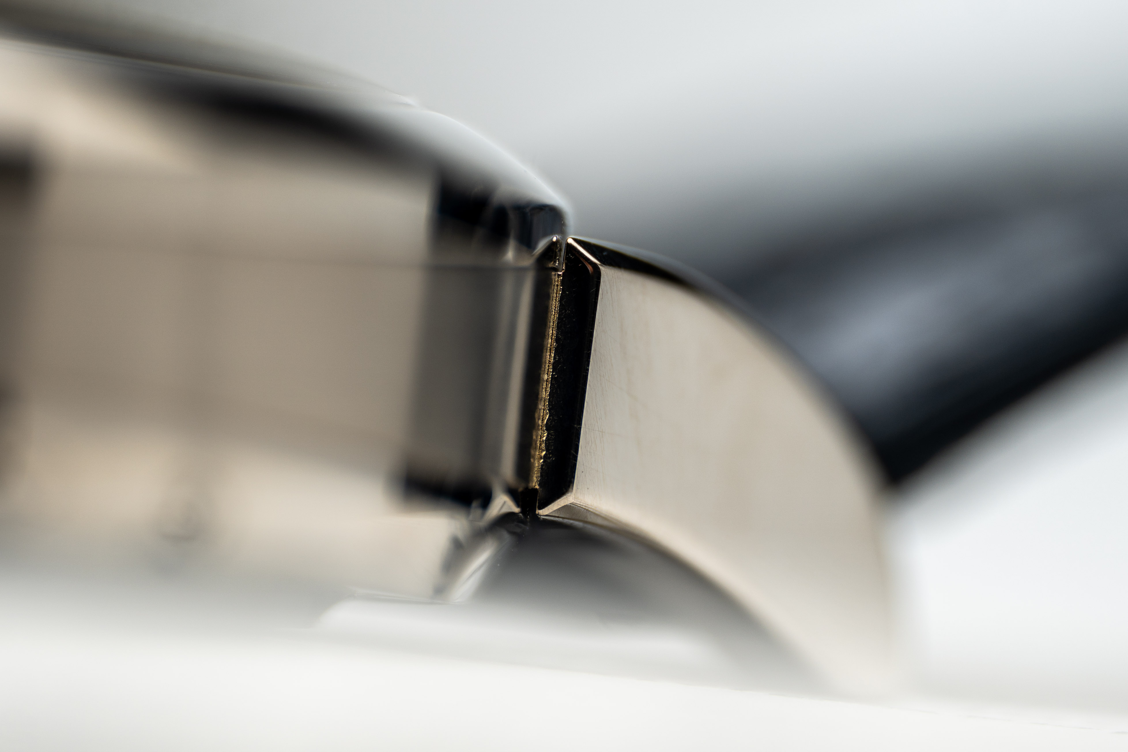 Dù đã cầm trên tay hàng trăm chiếc A. Lange & Söhne, tác giả bài viết (nguyên văn) vẫn ấn tượng bởi sự chỉn chu, chất lượng xuất sắc đến từng chi tiết. Thậm chí, thanh kim loại trên khóa cài (pin buckle) của Lange – vốn không có tác dụng thực tế – cũng được làm chắc chắn, tăng độ nặng và khiến chiếc đồng hồ thêm phần “cá tính”. Đây chỉ là một trong vô số chi tiết “thiên tài” của Blümlein, cho thấy triết lý thiết kế tỉ mỉ đặc trưng của hãng.