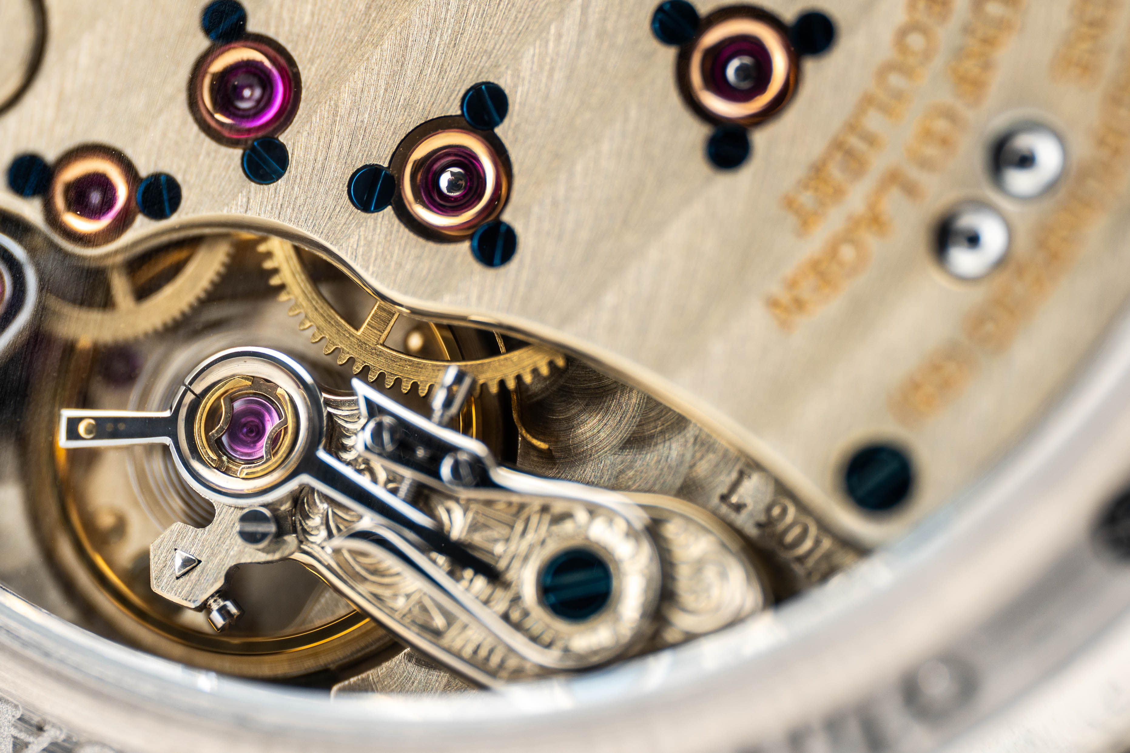 Cái tên L(90)1.0 gợi ý rằng bộ máy Lange 1 được phác thảo từ năm 1990 và là bộ máy đầu tiên của A. Lange & Söhne thời hiện đại. Thực ra, L901.0 thừa hưởng bộ truyền lực (gear train) từ Jaeger-LeCoultre caliber 822, nhưng đã được chỉnh sửa sâu để phù hợp thiết kế mặt số “lệch tâm” của Lange 1.