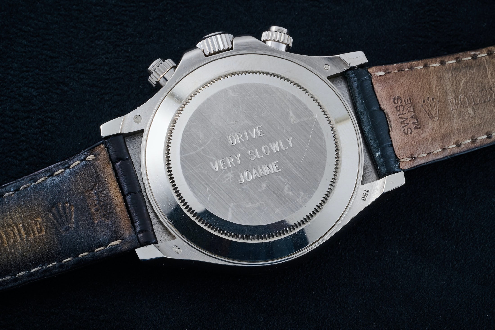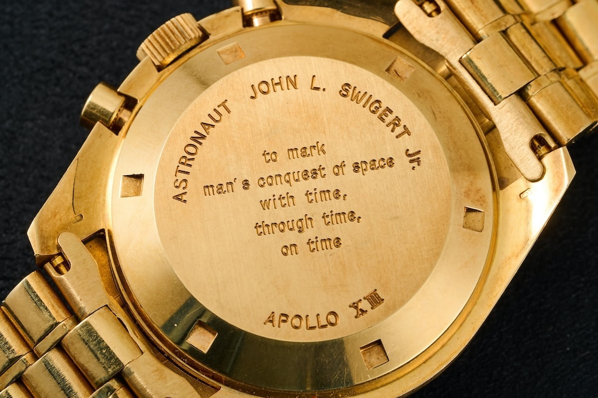 Những chiếc đồng hồ được khắc chữ thường chứa đựng một câu chuyện bên lề. Không chỉ chiếc Daytona của Paul Newman có câu chuyện riêng, mà chiếc Omega Speedmaster Apollo XI tại Sotheby's cũng kể một câu chuyện. Chiếc Omega Speedmaster Apollo XI sắp được rao bán đến từ Jack Swigert Jr., phi hành gia chỉ huy của tàu Apollo XIII. Chiếc đồng hồ được ký gửi bởi chính cháu trai của Swigert.