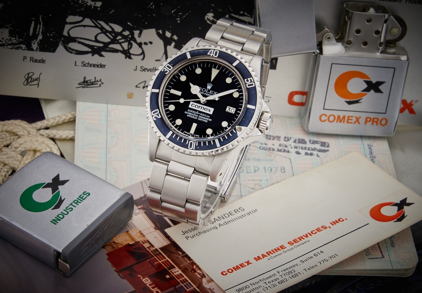 Nằm ở Lô 74, chiếc đồng hồ Sea-Dweller gây ấn tượng mạnh về nguồn gốc và còn đi kèm tất cả phụ kiện đi kèm. Chiếc đồng hồ Sea-Dweller Comex 1665 được ký gửi bởi chủ sở hữu ban đầu. Jesse Sanders là một Trung úy Hải quân Hoa Kỳ và đã đeo chiếc đồng hồ thường xuyên.