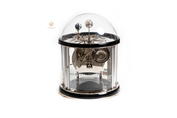 Kèm với đó là tinh thể trong suốt, cho phép người dùng quan sát các chi tiết đang hoạt động bên trong chiếc đồng hồ để bàn Hermle Tellurium II 22823740352. Điểm đặc biệt nhất cần nói tới chính là hệ Mặt Trời thu nhỏ xuất hiện trên đỉnh đồng hồ, có ba hình cầu tượng trưng cho Mặt Trời, Trái Đất và Mặt Trăng.