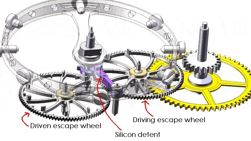 Không đơn thuần là một vật liệu lạ, linh kiện Silicon còn có độ chính xác rất cao - một điều kiện quan trọng để vận hành cơ chế echappement naturel. Tuy nhiên, vào thời điểm đó, công nghệ DRIE sản xuất silicon mới chỉ có thể làm ra những vật mỏng dẹt thay vì thiết kế 3D. Vì thế, cơ chế bộ thoát Dual Direct Escapement bên trong chiếc Freak đã tích hợp tất cả cơ chế trên một mặt phẳng.