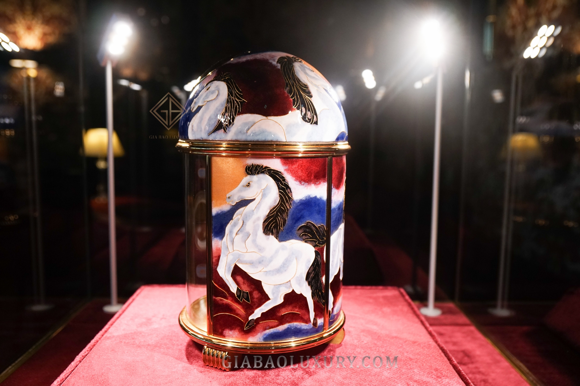 Xung quanh gian phòng là vài ba mẫu đồng hồ để bàn mái vòm được chế tác tinh vi. Trong số đó, có một mẫu đồng hồ chuyển hóa ánh sáng mặt trời thành năng lượng vận hành.