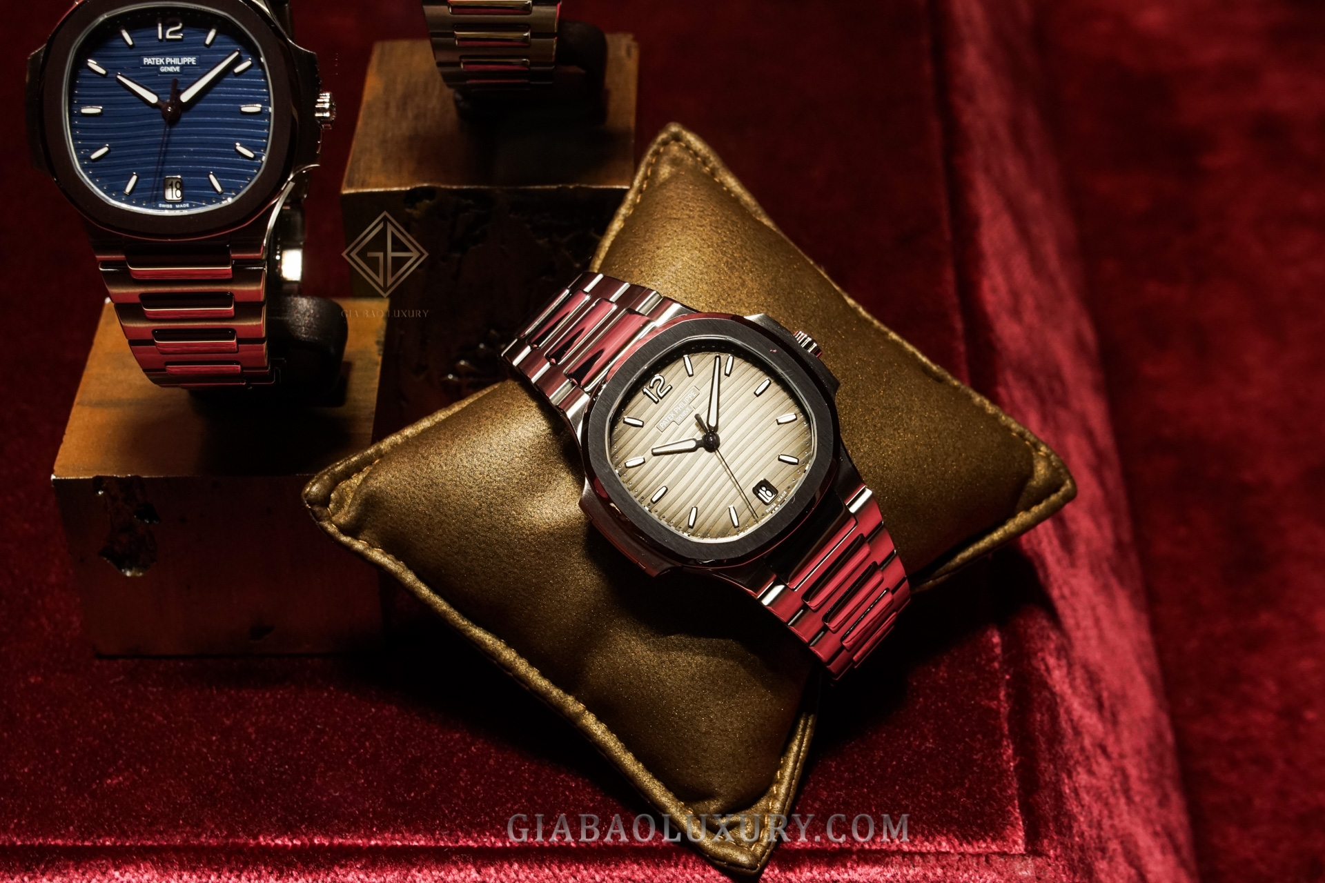 Mẫu đồng hồ Aquanaut nữ phiên bản kỷ niệm Singapore năm nay, lấy tông màu đỏ làm chủ đạo.