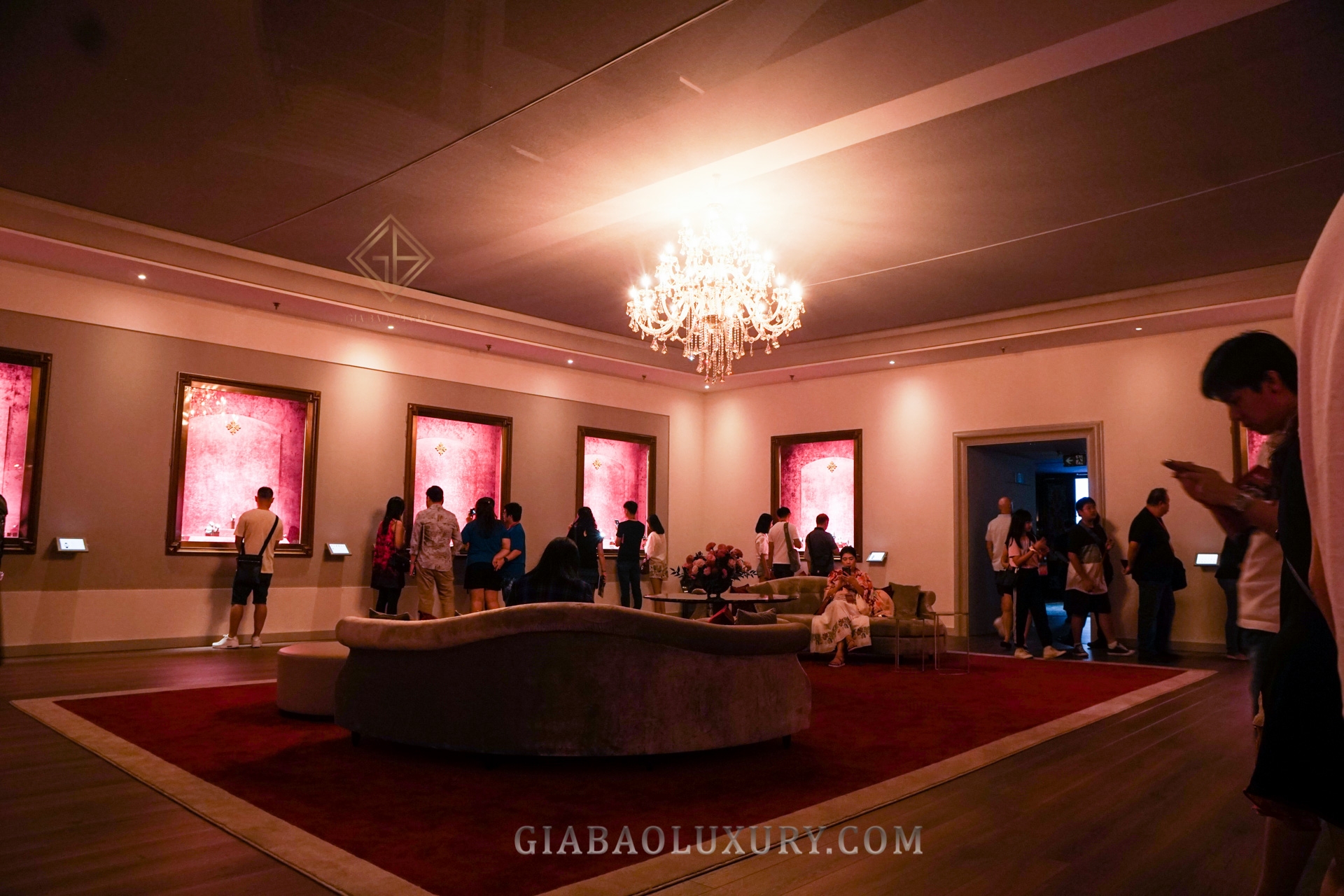 Sau khi làm thủ tục check-in, ghi danh, lấy máy nghe và theo dõi lịch sử thương hiệu Patek Philippe trong gian phòng Theater (số thứ 3), đại diện Gia Bảo Luxury đã có cơ hội chiêm ngưỡng toàn thể những chiếc đồng hồ hiện đại mà hãng sản xuất. Tại không gian có màu hồng tím sang trọng, những chiếc đồng hồ trong lồng kính tỏa sáng với ánh đèn vàng rực rỡ và bắt mắt. Từ những chiếc đồng hồ dresswatch tiêu chuẩn như Calatrava ở mọi phiên bản tới những chiếc Nautilus biến thể từ thép được săn đón nồng nhiệt tại thị trường thứ cấp, hay cả những mẫu đồng hồ giới hạn dành riêng cho thị trường Singapore cũng đều được trưng bày tại gian phòng Current Collection.