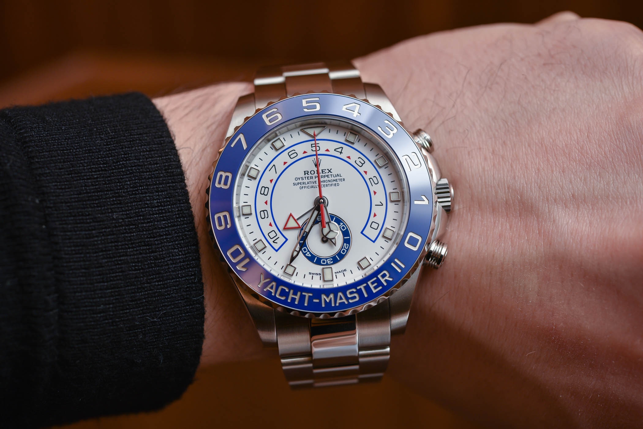 Để phù hợp với cảm giác sang trọng, Rolex Yacht-Master II được trang bị bộ vỏ làm từ một số hợp kim tốt nhất thế giới. Nhiều nhà sưu tập yêu thích chiếc đồng hồ này vì sự kết hợp của kim loại quý và thép không gỉ bền bỉ - những gì Rolex gọi là Rolesor.