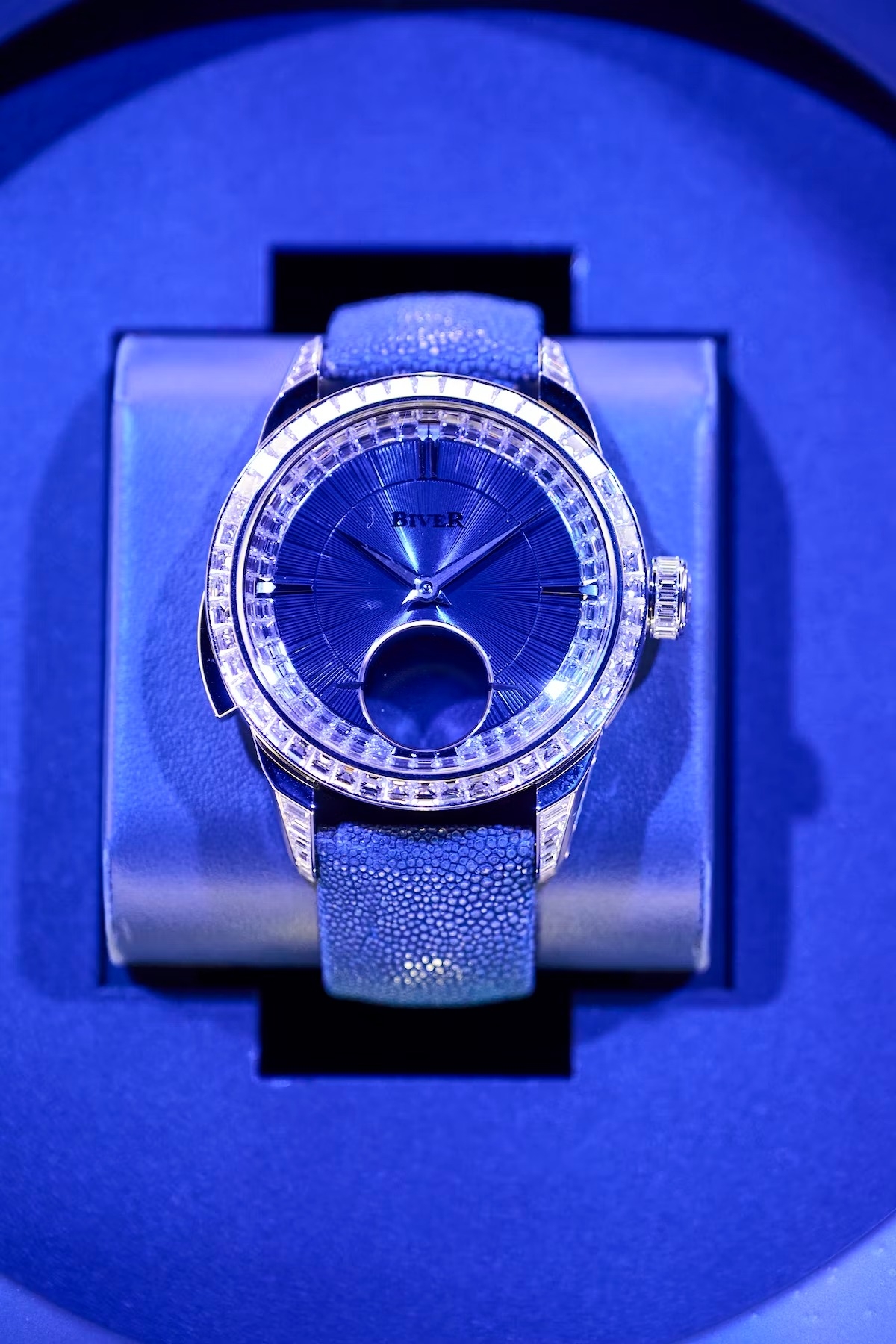 Một trong số ít chiếc mẫu đồng hồ mới không nằm trong lồng kính, có thể lên tay trực tiếp khách mời