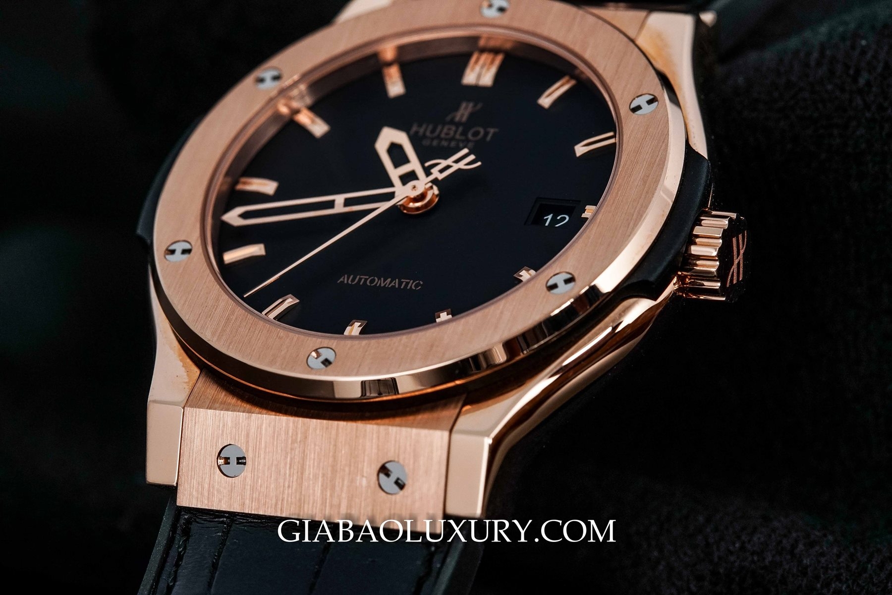 (Hublot Classic Fusion 42 có vành bezel và phần giữa càng nối dây được mài phay xước thẳng)