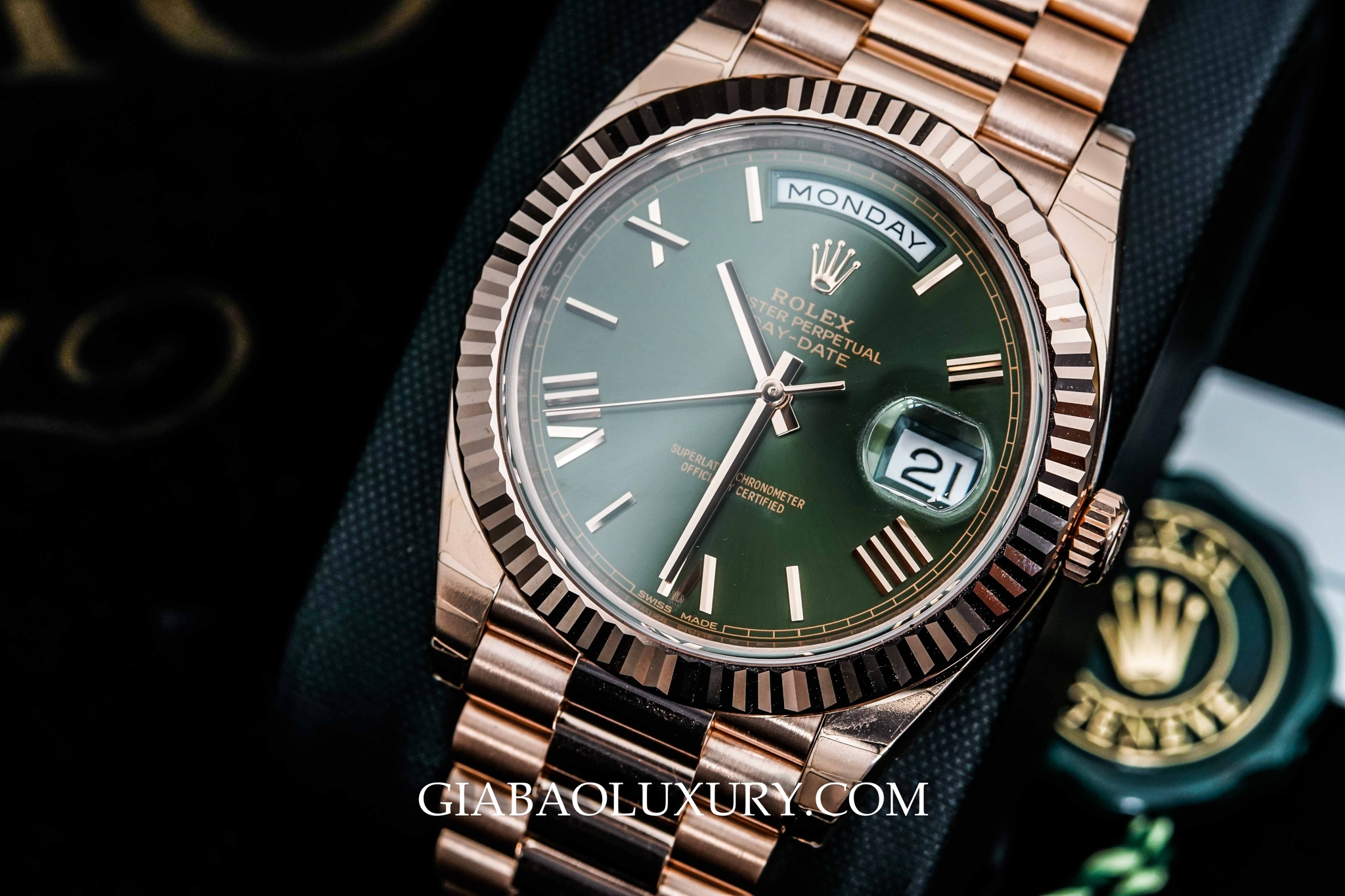 (Rolex Oyster Perpetual Day-Date 228235 có bộ vỏ được chế tác từ vàng hồng 18k nguyên khối)