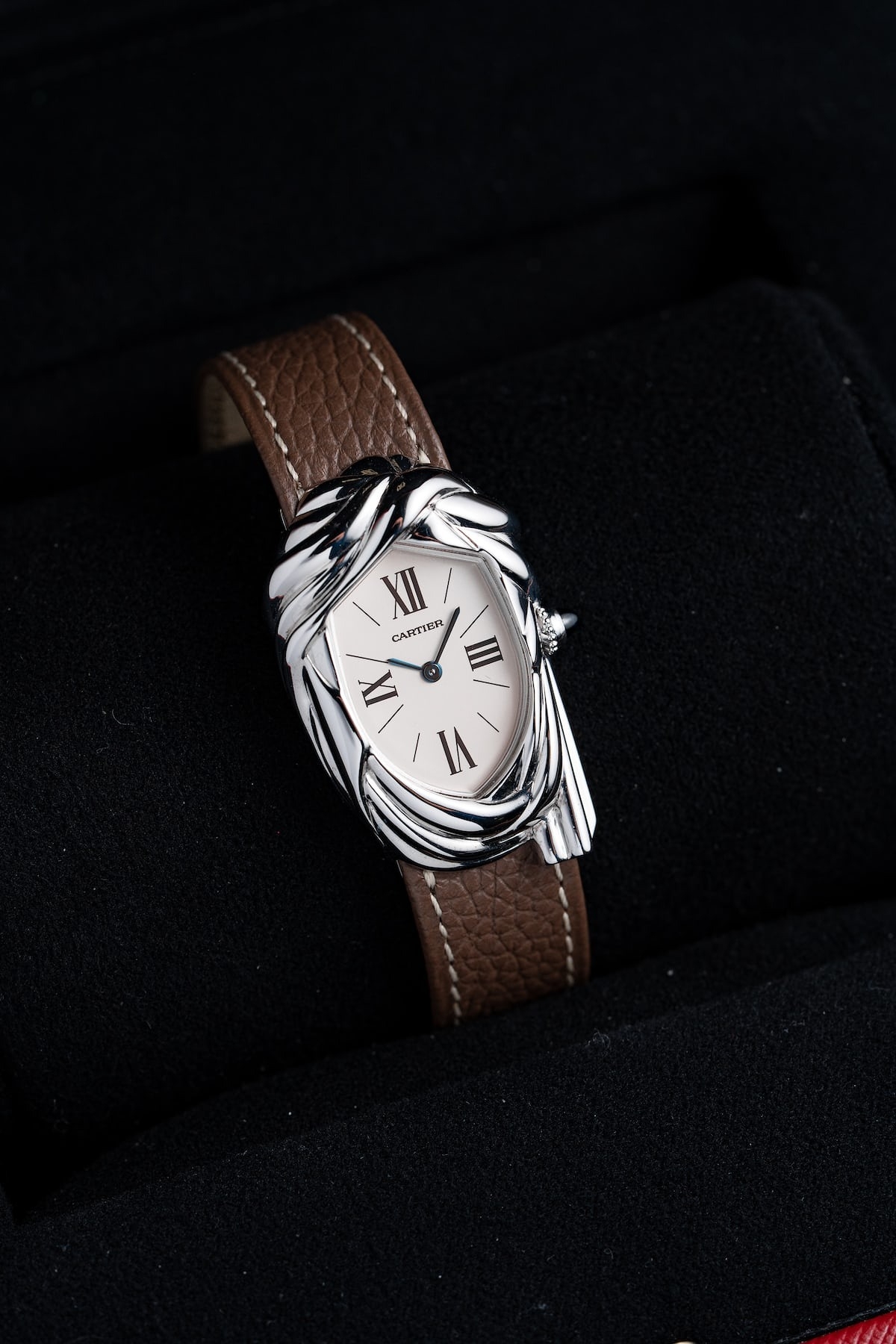 Tuy nhiên, điểm khác biệt của Cartier là cách hãng biến ngôn ngữ thiết kế ban đầu của mình thành một biểu tượng. Mặt số màu trắng, các chữ số La Mã màu đen, kim hình kiếm màu xanh lam và vương miện cabochon đã trở thành biểu tượng của thương hiệu. Điều này rất thông minh, vì bạn có thể dễ dàng nhận ra đâu là một chiếc đồng hồ Cartier, thậm chí là một mẫu ít người biết đến nếu vô tình bắt gặp.