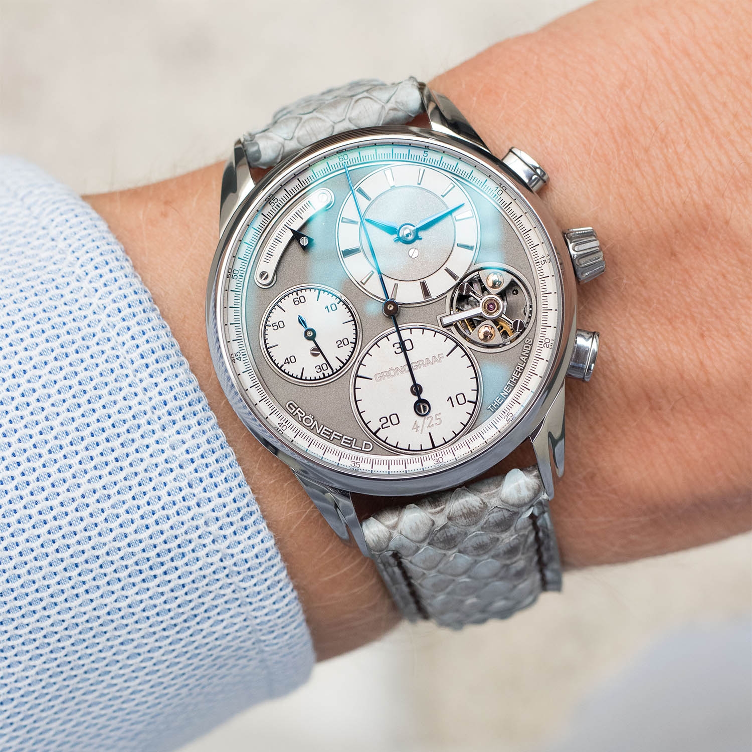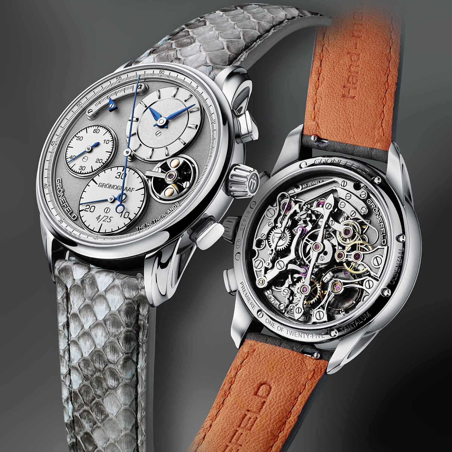 Năm 2022, Grönefeld khiến giới chế tác kinh ngạc với một chiếc đồng hồ tuyệt đẹp - Grönefeld 1941 Grönograaf. Là một kiệt tác từ kỹ thuật kỳ diệu bên trong, Grönefeld 1941 Grönograaf có vẻ ngoài tuyệt vời.