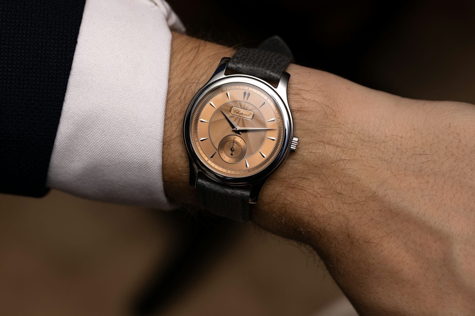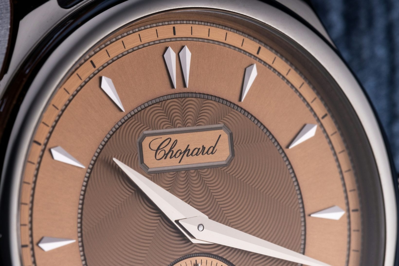 Cùng mức giá (cỡ 23.000 CHF) là chiếc Chopard LUC 1860 bằng chất liệu Lucent Steel được phát hành vào năm 2023. Đây là cách diễn giải hiện đại cho chiếc LUC đầu tiên của thương hiệu Chopard, và nó nhận về nhiều hiệu ứng tích cực. Việc phát hành lại một kiệt tác cũ có thể là một công việc mạo hiểm vì áp lực phải đáp ứng được kỳ vọng. Rủi ro được đền đáp xứng đáng. Và chiếc đồng hồ Chopard L.U.C 1860 này có những fan hâm mộ riêng ngay kể từ khi nó được phát hành. Một phần bởi vì phong cách cổ điển, sang trọng mà mặt số cá hồi với hoạ tiết guilliche đem lại.