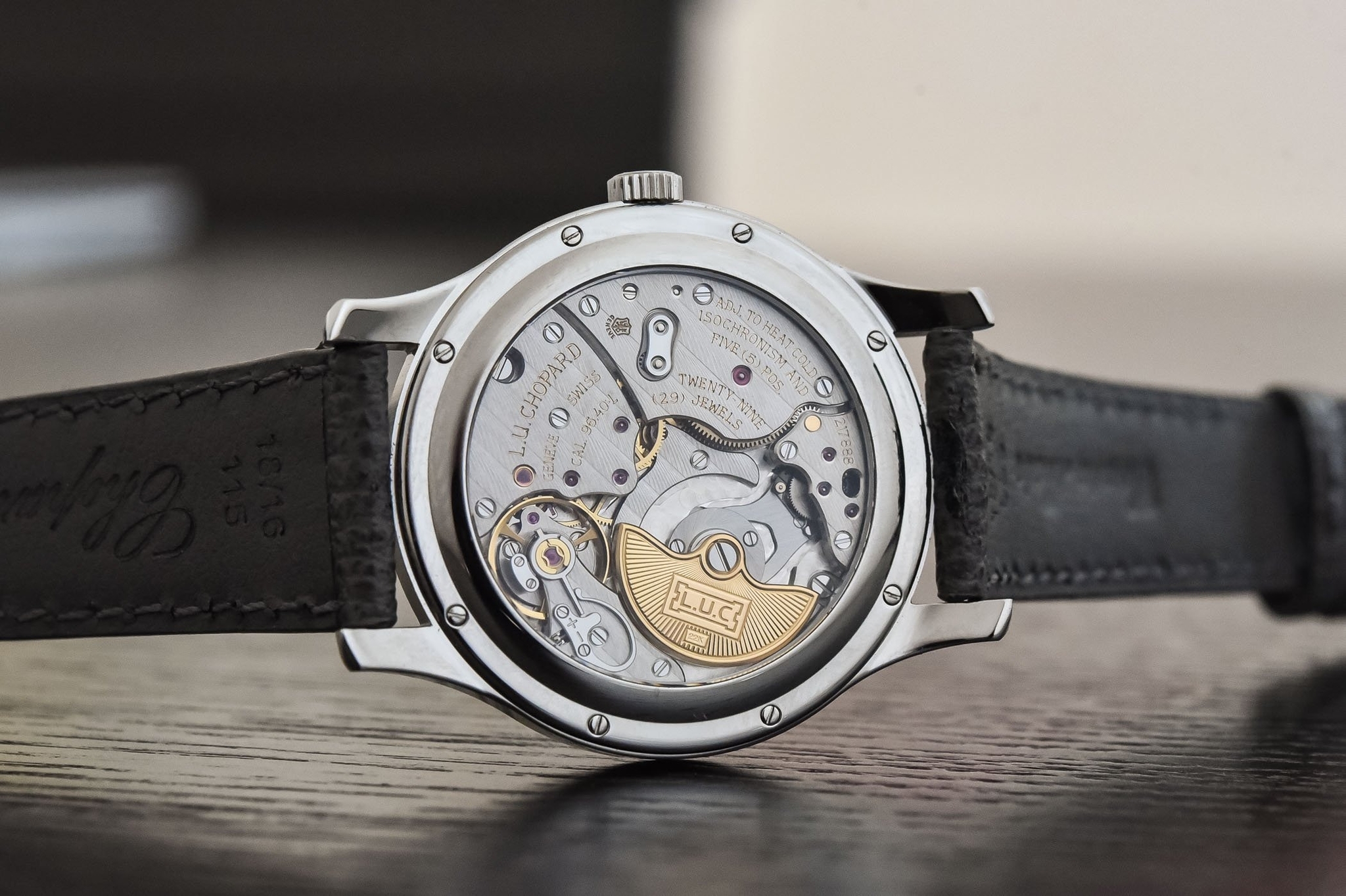 Khi Calibre 1.96 được ra mắt vào năm 1996, nó đã được ca ngợi là một trong những bộ máy tự động tốt nhất vào thời điểm đó, có khả năng sánh ngang với sản phẩm từ những gã khổng lồ chế tạo đồng hồ chất lượng như Patek Philippe và Vacheron Constantin. Còn bên trong chiếc Chopard L.U.C 1860 in Lucent Steel thì sao. Calibre LUC 96.40-L đã được cập nhật trông đẹp hệt như bộ máy của năm 1996.