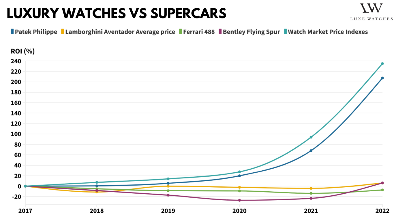 So sánh điều này với hơn 200% của Patek Philippe, thật dễ dàng để biết đâu sẽ là lựa chọn đầu tư thông minh hơn. Rõ ràng siêu xe là một mặt hàng xa xỉ để thưởng thức, nhưng không phải để tạo ra sự giàu có. Nếu bạn muốn thứ gì đó mà bạn có thể thưởng thức và sẽ tăng giá trị, đồng hồ xa xỉ là khoản đầu tư khôn ngoan hơn.
