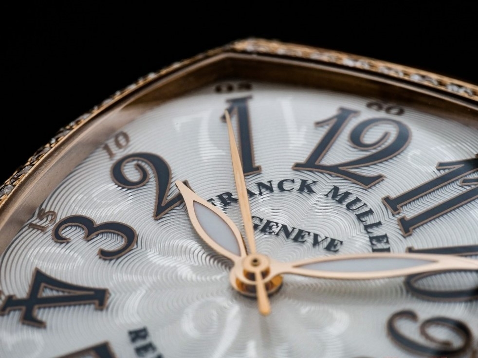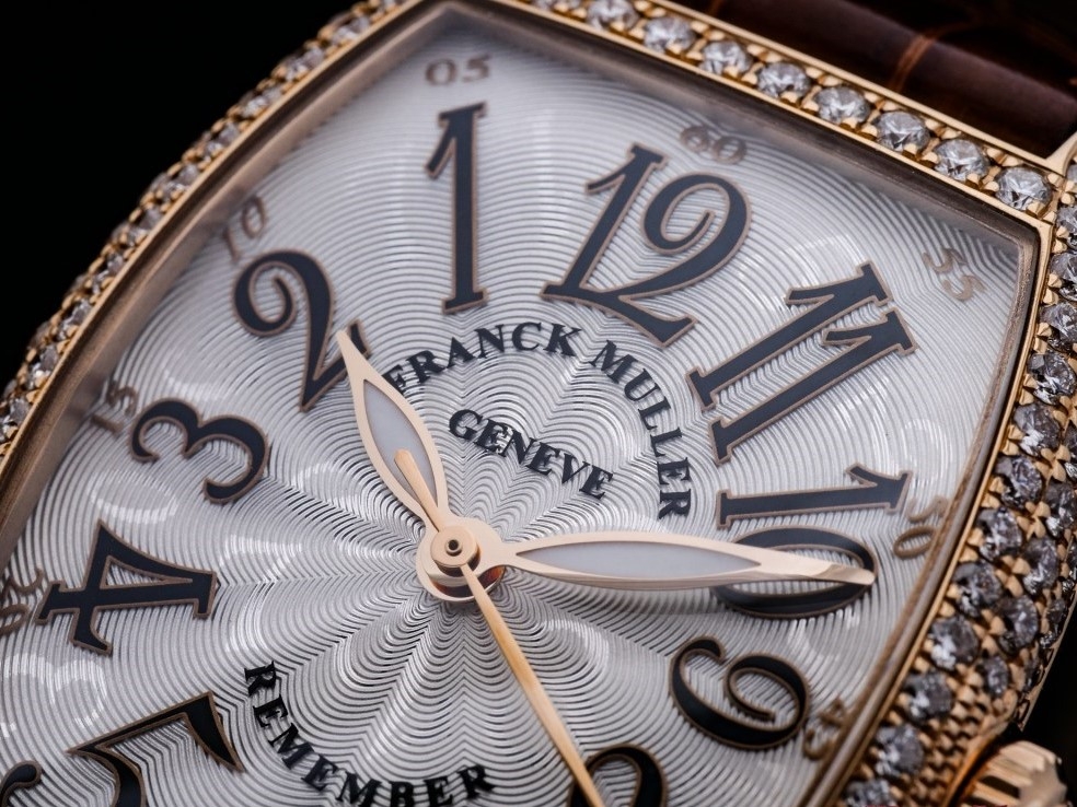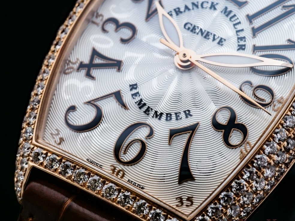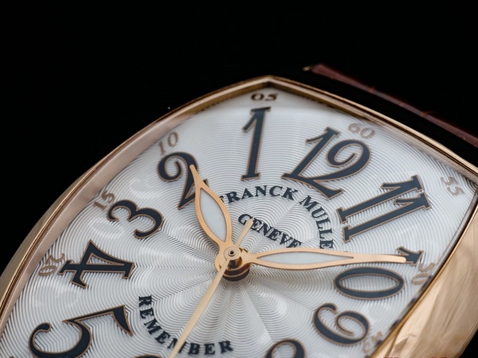 Mặt số chiếc Franck Muller Cintrée Curvex Remember với tên thương hiệu ở nửa trên và tên mẫu đồng hồ ở nửa dưới