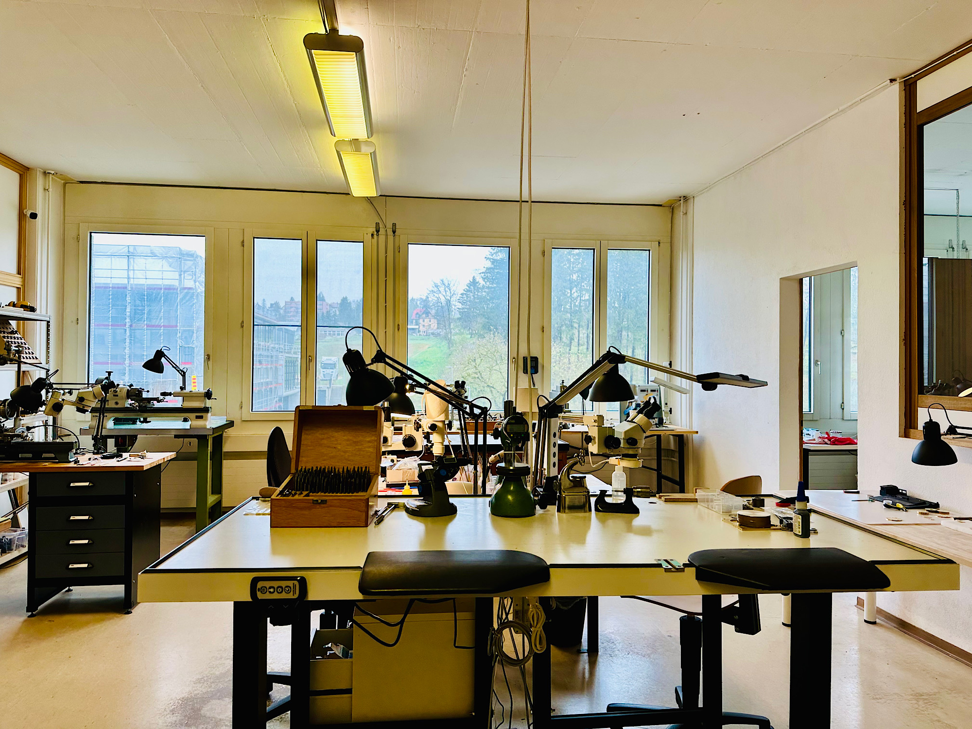 Chúng tôi nhận được lời mời tham quan và trải nghiệm xưởng chế tác của ngài Laine trước thềm sự kiện W&W 2024. Ở phía trên bài viết, xưởng sản xuất cũ của ngài Laine được đặt gần tư gia của ngài tại Le Locle, tuy nhiên để mở rộng phát triển ngài Laine đã chuyển sang thành phố La Chaux-de-Fonds giáp với biên giới Pháp. Tản mạn một chút về 2 thành phố Le Locle, La Chaux-de-Fonds đây là 2 thành phố lân cận và là vùng núi tiếp giáp với lãnh thổ của Pháp. Thời tiết của 2 khu vực này rất phù hợp để làm đồng hồ với lý do mưa và lạnh. Thời điểm chúng tôi tham quan xưởng sản xuất thương hiệu, thời tiết nơi đây về gần mức 0 độ C và có tuyết trong khi tại Zurich hay Geneva đều có nắng đẹp và thời tiết khoảng 10 độ C. Quả đúng là nơi có khí hậu phù hợp cho việc chế tác đồng hồ quanh năm.