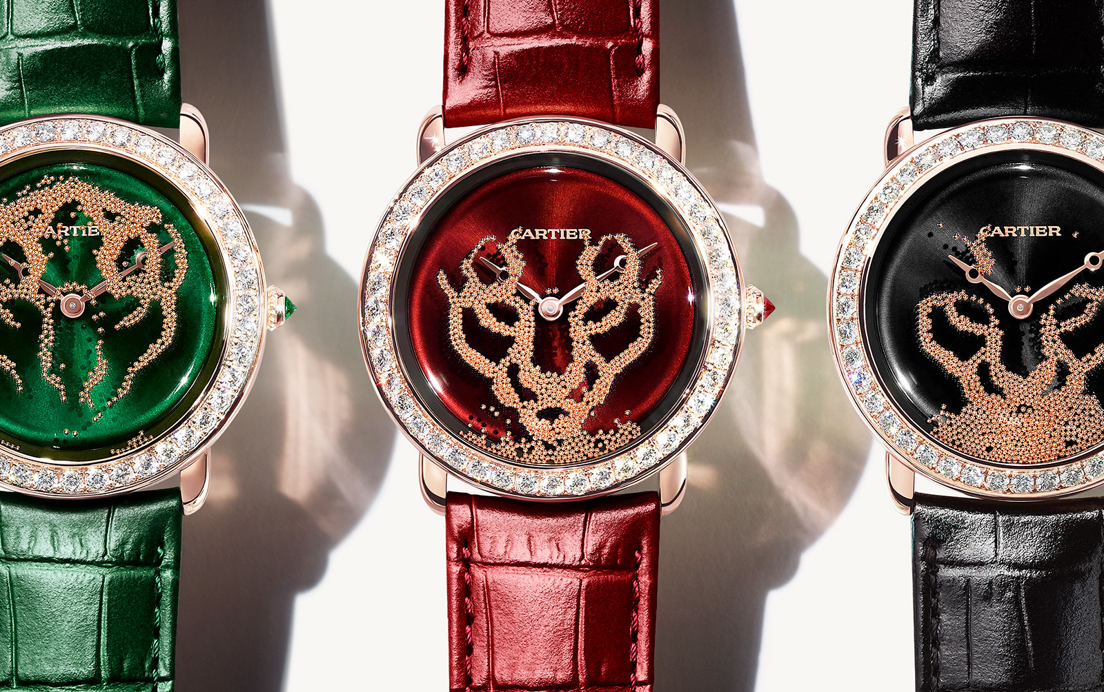 Chiếc đồng hồ Cartier “đáng lưu ý” nhất trong năm không gì khác ngoài Revelation D’une Panthere. Đây là một chiếc đồng hồ nữ, với khuôn mặt báo luôn thay đổi. Chiếc đồng hồ này chứa rất rất nhiều những quả cầu bằng vàng nhỏ xíu chảy nhỏ giọt trên mặt số đồng hồ theo chuyển động của cổ tay, tạo nên hình thù đầu một con báo đốm, linh vật đã gắn liền với tên tuổi của Catier.