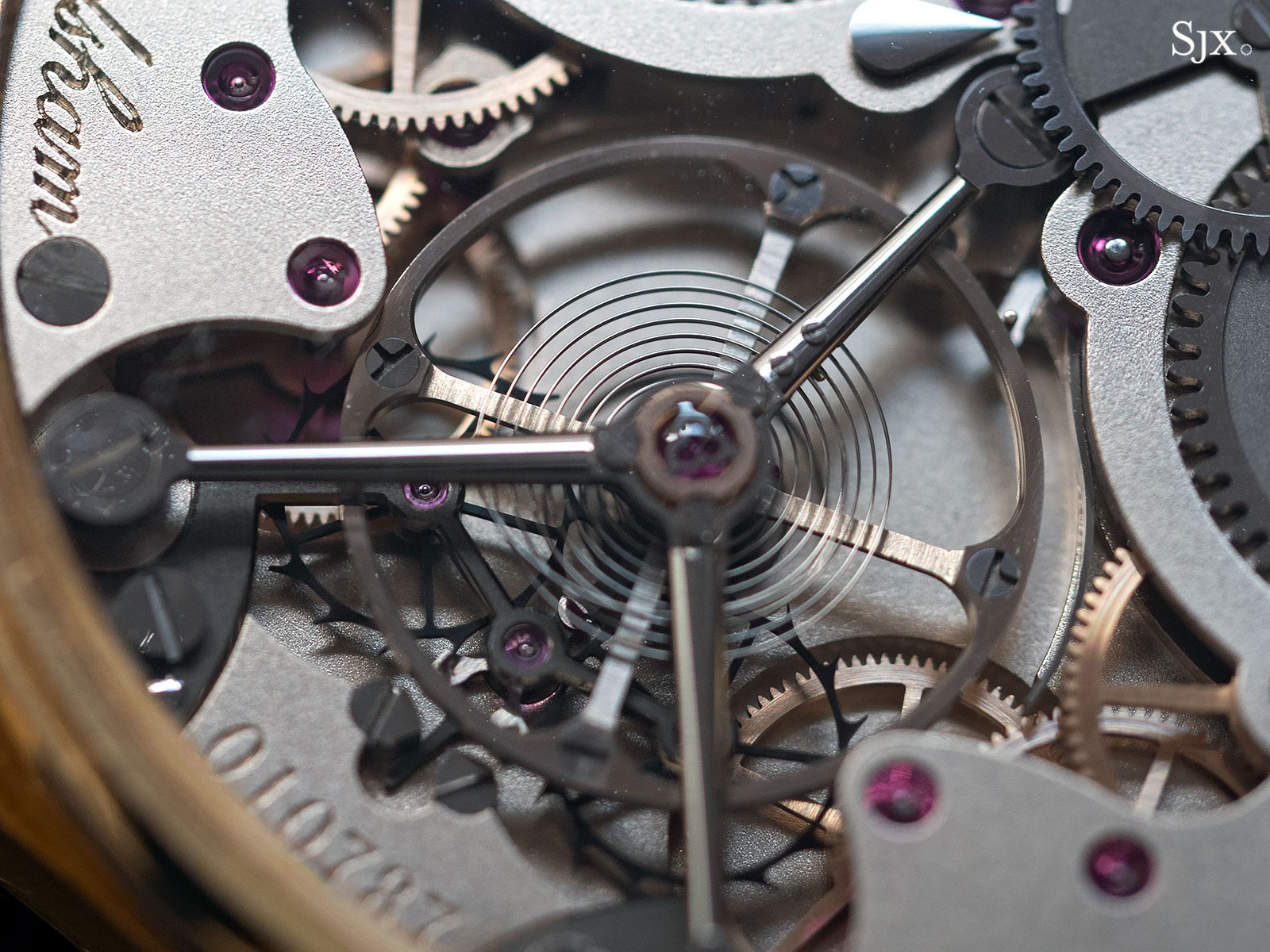 Có rất nhiều cơ cấu kĩ thuật phức tạp bên trong chiếc đồng hồ này, đặc biệt chính là “Double Impulse Chronometer”. Để “thẩm” được chiếc đồng hồ này, chúng ta cần biết khái niệm về “Double Impulse Chronometer”. Đây là một bộ thoát (Escapment) khác với cơ chế truyền thống.