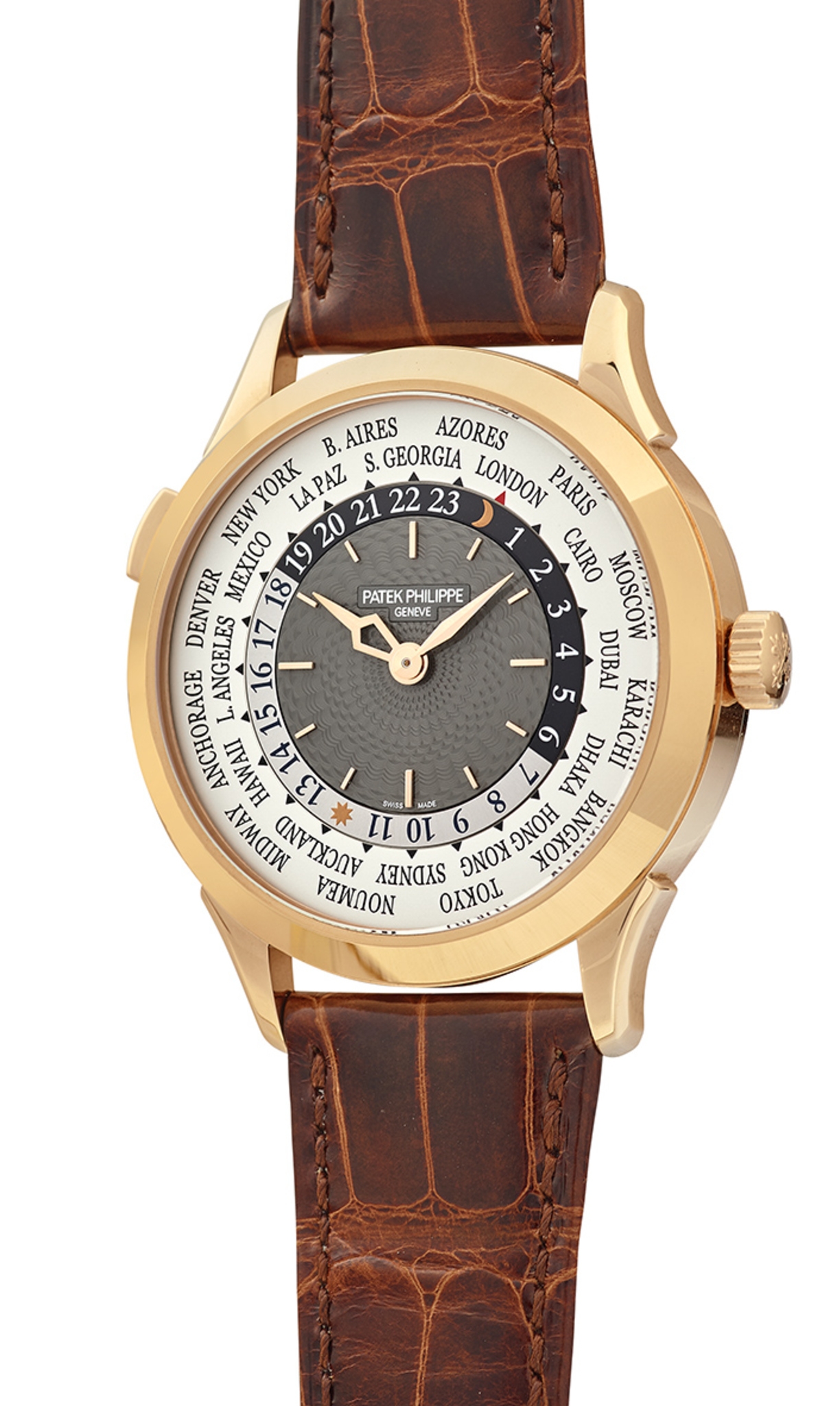 Từ đấu giá nhà Christie’s cho tới Phillips, đồng hồ Patek Philippe world-time vintage gần đây đã được bán với mức giá cao kỷ lục (ghi nhận Patek Philippe ref. 2523 được đơn vị Phillips bán với giá 7.048.000 CHF (khoảng 179 tỷ đồng) ngày 8-9/5). Có giá phải chăng hơn, chiếc đồng hồ Patek Philippe Worldtimer ref. 5230R có trong lot 174 được ước tính có giá bán từ 28.000 tới 50.400 Euro.