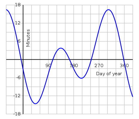 Ngày mặt trời biểu kiến không thực sự kéo dài 24h bởi độ dài thời gian của mỗi ngày là khác nhau. Dựa trên độ nghiêng của Trái đất và quỹ đạo hình elip khi Trái đất quay quanh Mặt trời, khoảng cách ánh sáng từ Mặt trời đến Trái đất sẽ có sự thay đổi, dẫn đến sự chênh lệch thời gian mỗi ngày. Sự chênh lệch này được tích lũy lại, có thể nhanh hơn tới 17 phút hoặc chậm hơn 14 phút, nên để có thể tính toán được chính xác thời gian thực của một ngày, người ta sử dụng Phương trình thời gian.