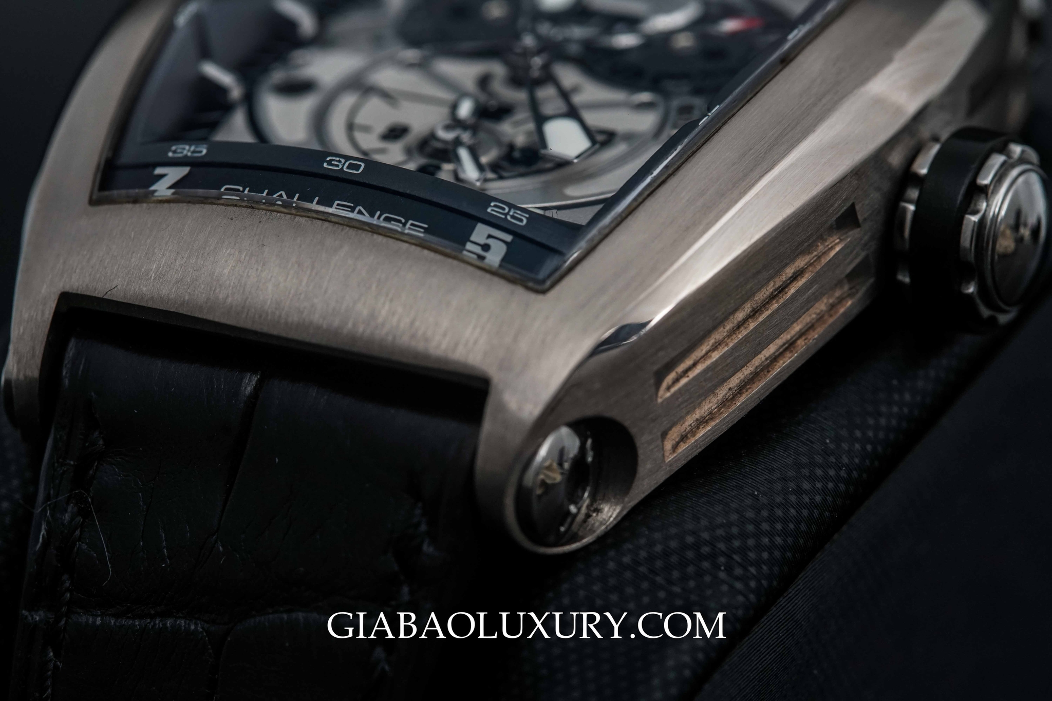 CVSTOS Challenge Twin Time được bảo vệ bởi lớp vỏ khung dáng tonneau, kích thước 41mm x 54mm, bằng vàng trắng nguyên khối. Hiện nay, chỉ có số ít những nhà sản xuất sản xuất bộ vỏ khung kiểu tonneau bởi đây là một thiết mới, với đại diện được biết đến nhiều nhất chính là thương hiệu của sự xa xỉ Richard Mille. Còn CVSTOS ghi dấu ấn bởi những thiết kế vỏ khung nguyên khối, nối liền với dây đeo và bắt cặp hoàn hảo với lớp kính sapphire lồi, tạo cơ hội tuyệt vời để chiêm ngưỡng kì quan bên trong cùng mức giá dễ chịu hơn một chút.