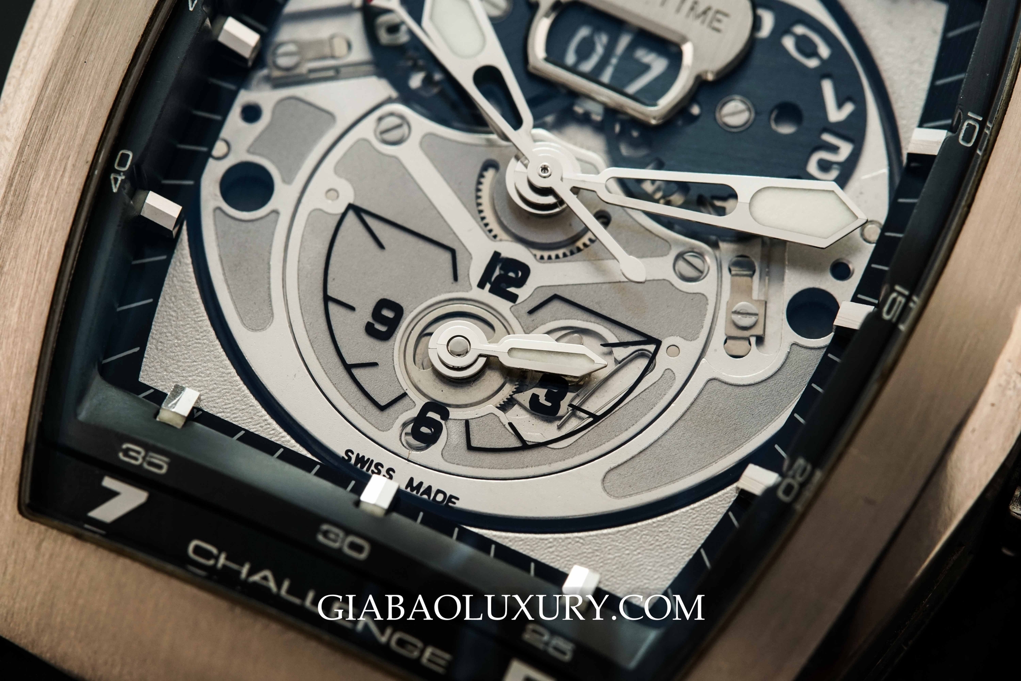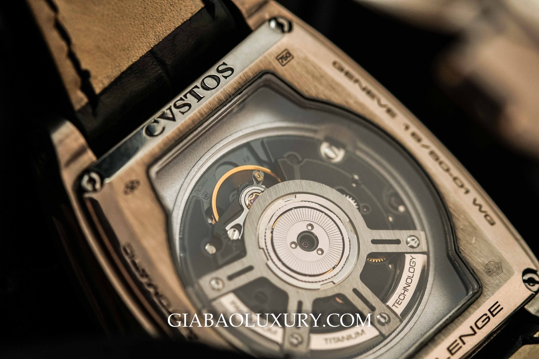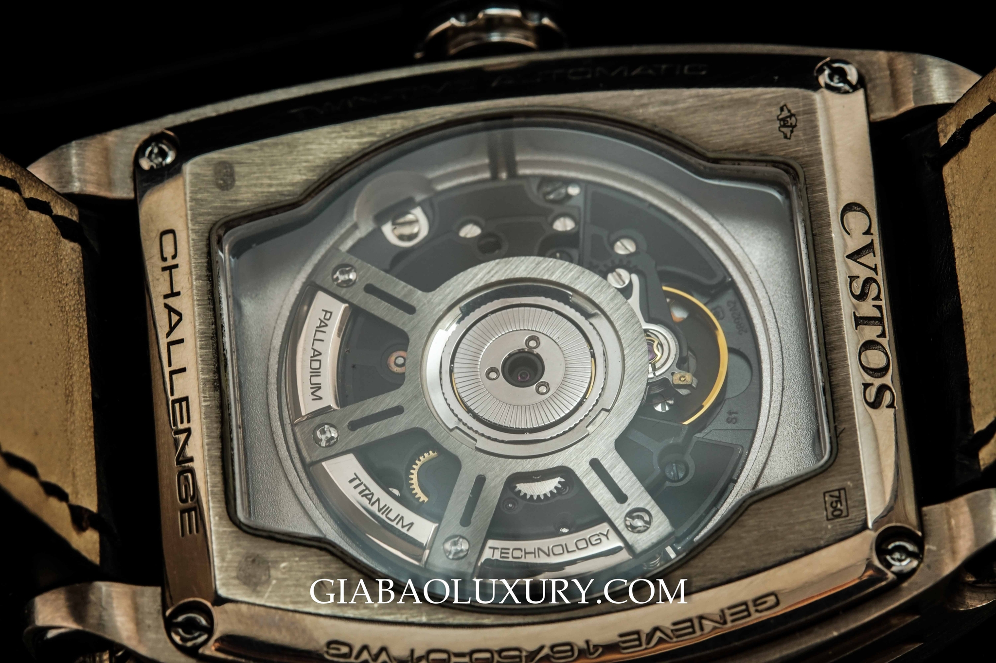 Nếu việc sắp xếp mặt số là điểm thú vị nhất thì mặt sau của chiếc Cvstos Challenge Twin Time sẽ không mất quá nhiều thời gian để nghiên cứu. Khi lật mặt sau của chiếc đồng hồ này, bộ máy automatic Calibre CVSTOS 551 với 21 chân kính sẽ hiện ra. Được cấu thành từ nhiều hợp kim chất lượng như Palladium và Titanium, rotor của hãng có khả năng tạo ra nguồn năng lượng để Cvstos Challenge Twin Time hoạt động tối đa trong vòng 42 giờ ở tần số 4Hz.