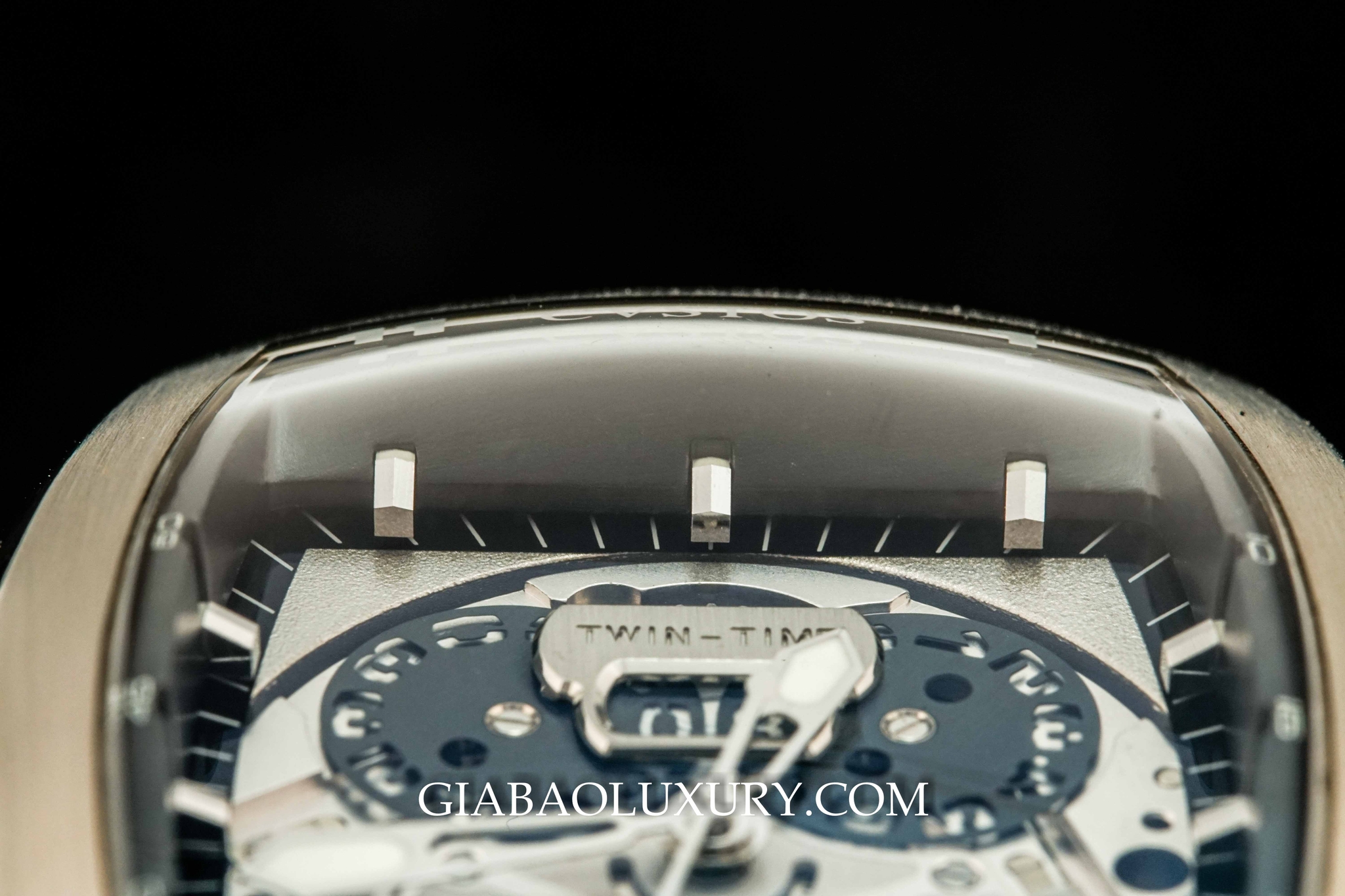 Tuy nhiên sở hữu những chiếc đồng hồ thuộc về CVSTOS giống như ta đang sở hữu một cỗ máy thời gian ngoài thời đại, với những kiểu dáng độc đáo mà chắc chắn rằng hầu như ta khó có thể tìm thấy những thiết kế tương tự. Nằm ở một trong ba bộ sưu tập còn khiêm tốn của hãng, chiếc đồng hồ CVSTOS Challenge Twin Time mà Gia Bảo Luxury lên tay ngày hôm nay vẫn mang những đặc điểm chung của hãng như: dáng vỏ tonneau thể thao đường kính lớn cùng lớp kính sapphire lồi đáng kể.