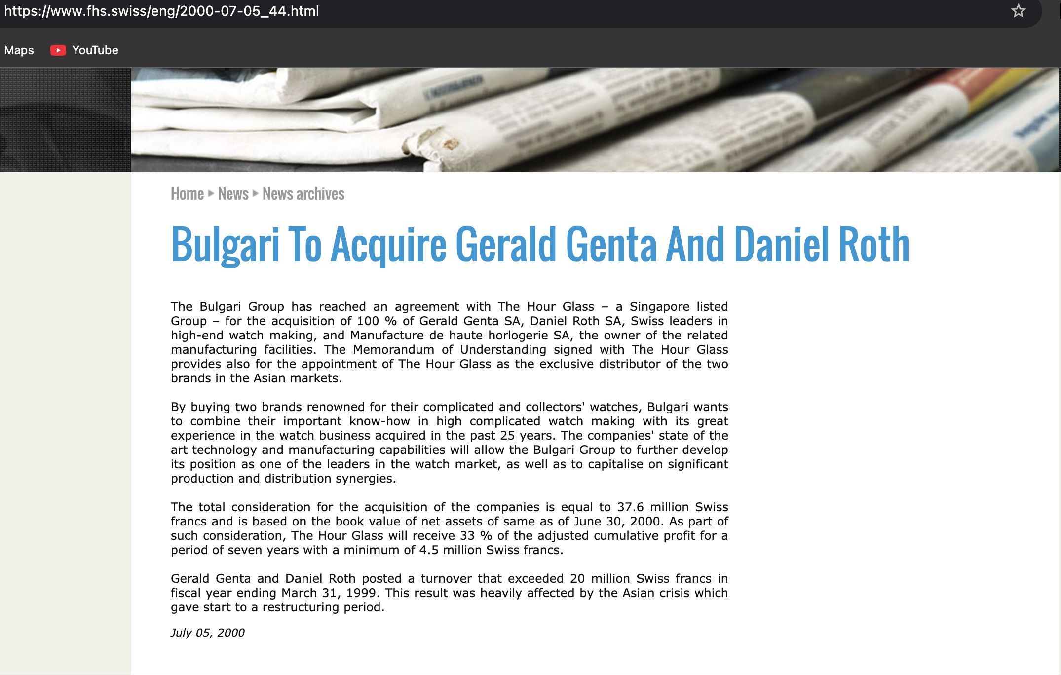 Đến 2023, LVMH (sở hữu Bulgari) quyết định “tái sinh” Daniel Roth như một “thương hiệu độc lập” nhắm đến giới sưu tầm siêu sang, hứa hẹn rất nhiều complication nhưng số lượng giới hạn. Điều đáng buồn là Daniel Roth (con người) không được tham gia và chỉ được giới thiệu như một nhà cố vấn, đồng thời kiểu vỏ elipsocurvex vẫn thuộc quyền Bulgari, khiến nỗi nuối tiếc trong cộng đồng mộ điệu càng lớn. Dù vậy, giới chuyên môn tò mò liệu giai đoạn LVMH có đưa thương hiệu quay về những giá trị cốt lõi hay chỉ đơn thuần là cách “định vị siêu xa xỉ” với giá cực cao. (trên 150.000 USD cho phiên bản C187 tourbillon). ![]()
