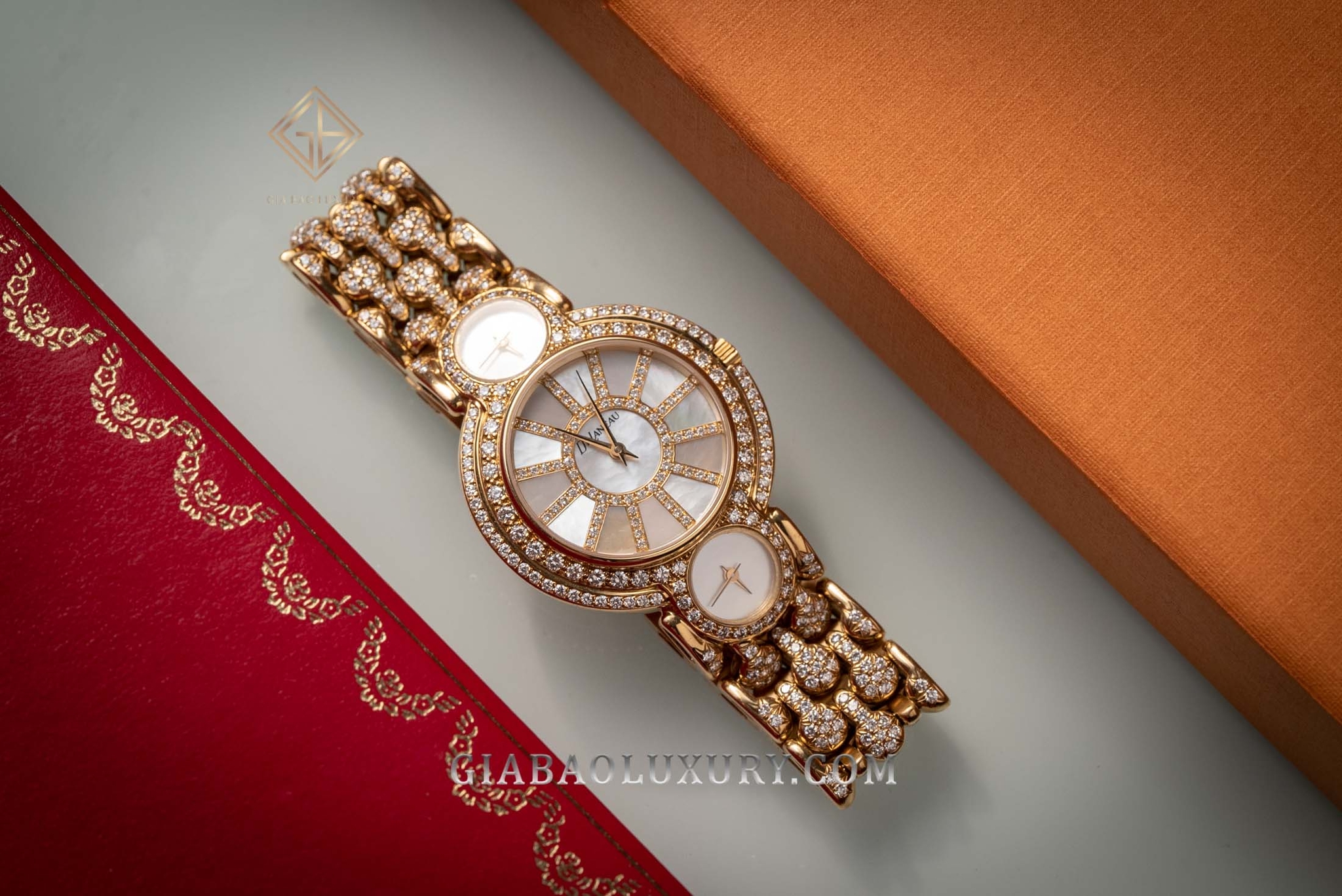 Tổng thể mặt đáy của chiếc đồng hồ tạo cho chúng ta cảm giác đang chiêm ngưỡng một tác phẩm điêu khắc chứ không còn là một chiếc đồng hồ bình thường nữa. Rotor cũng được chế tác với họa tiết hoa, các hình trái tim cách điệu. Các tấm cầu đều được gắn cố định bằng những chiếc vít thép. Phần đáy của 2 mặt số phụ cũng được “điêu khắc” và có núm chỉnh giờ dành cho từng mặt số phụ.Trên đó có thể hiện tên thương hiệu, thành phần của vàng và cả mã hiệu cùng với số serial của chiếc đồng hồ.
