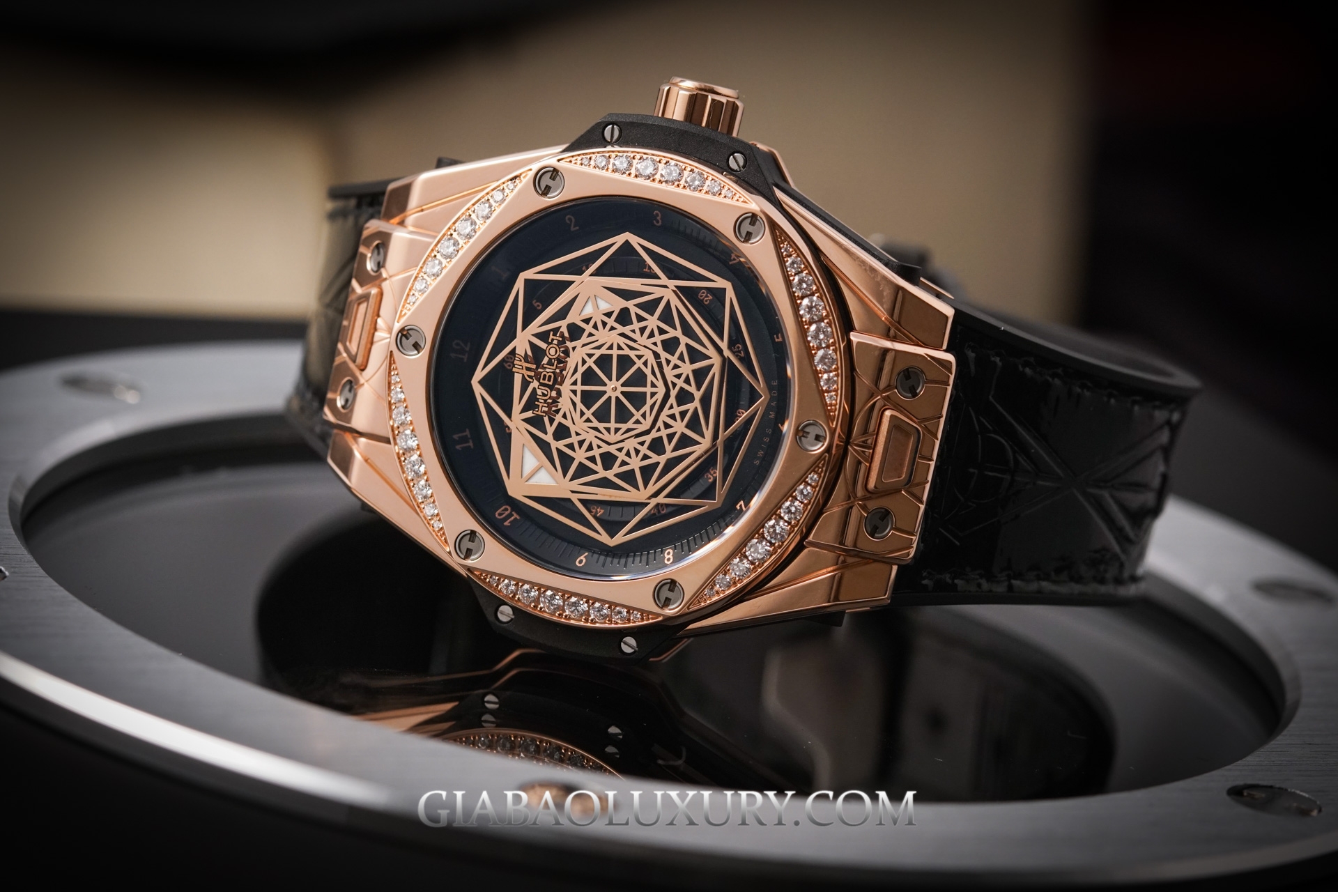 Nỗ lực tiếp theo của Hublot là đặt các chi tiết bên trên như cọc giờ, bộ kim và tên thương hiệu một cách tinh tế, không cản trở sự khoe sắc của mặt số cá tính. Những cọc chỉ giờ đính nổi xếp đều tại rìa mặt số cùng bộ kim trung tâm được làm đơn giản nhất có thể. Đơn giản song vẫn được hoàn thiện kỹ lưỡng. Cuối cùng hiệu ứng có chiều sâu của mặt số cùng sự phản chiếu của các chi tiết lên trên đó một cách hoàn hảo là điều không ai có thể chối cãi.