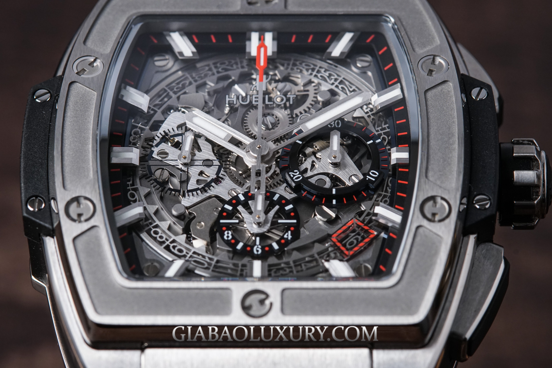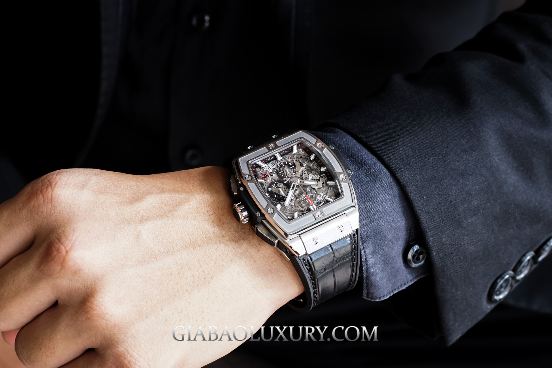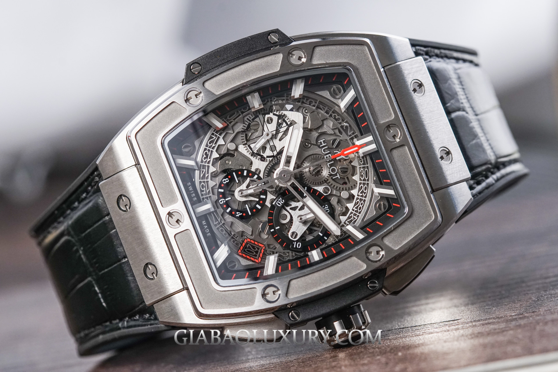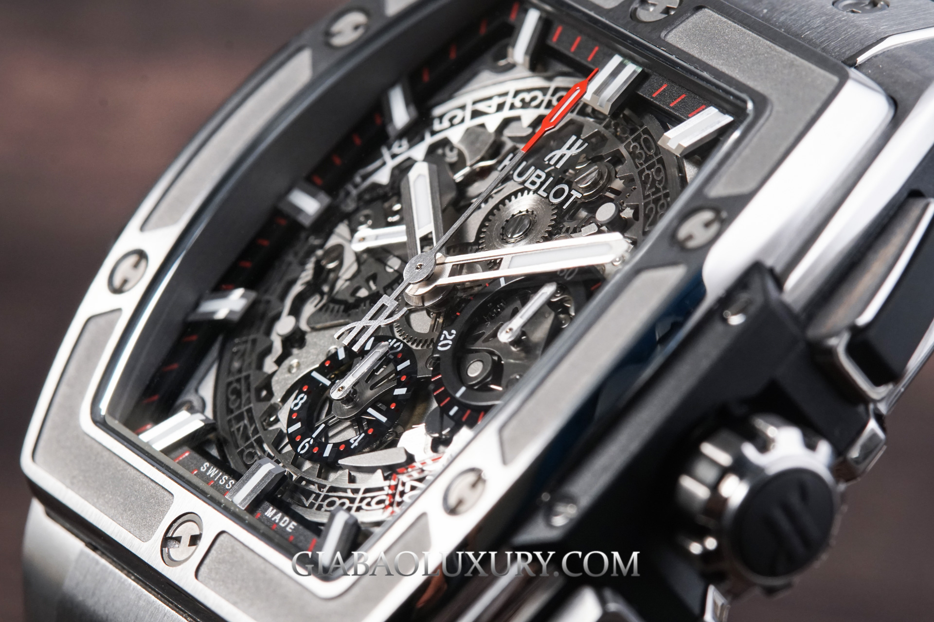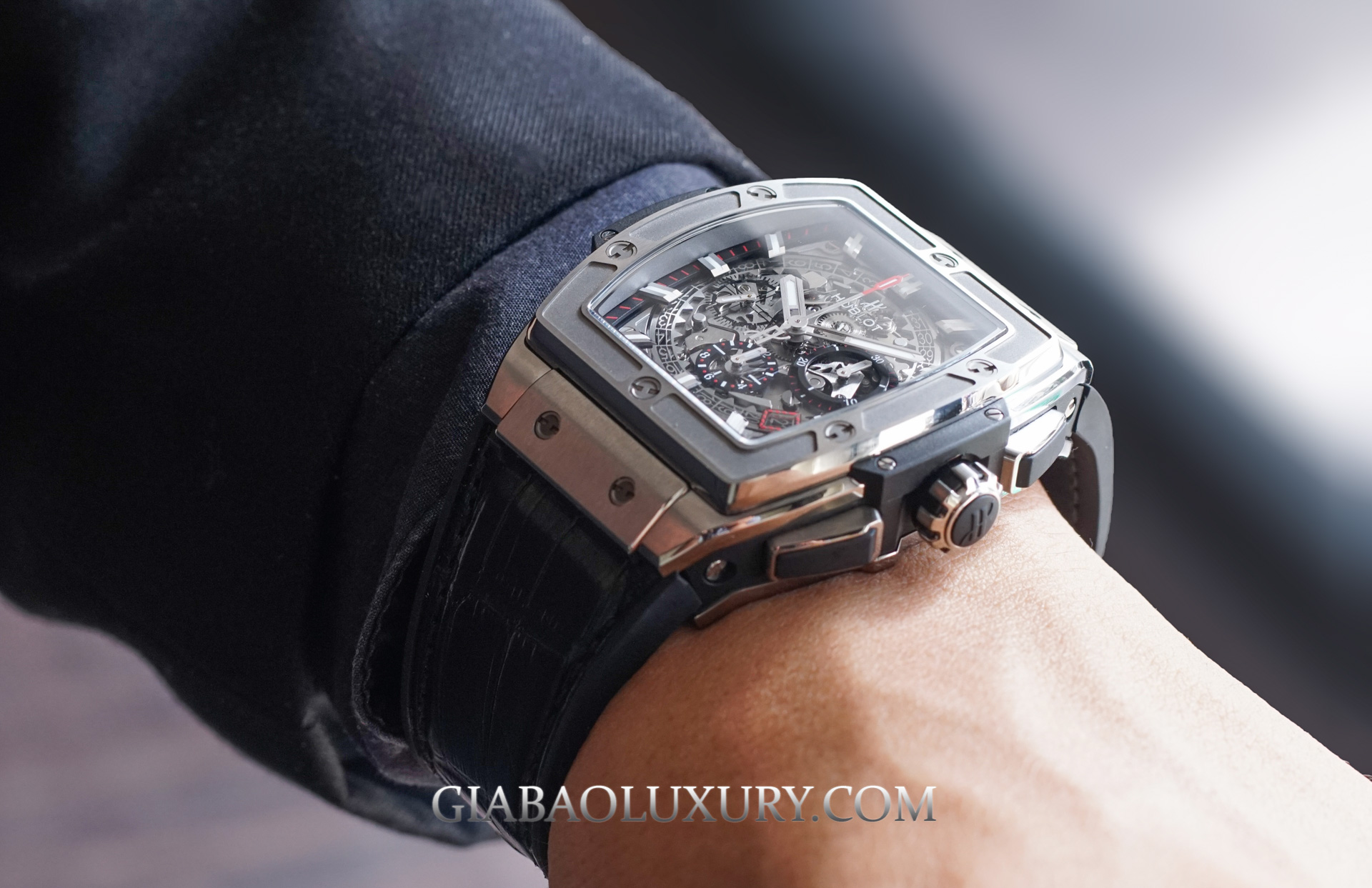 Tạm bỏ qua những điểm tương đồng và khác biệt, chúng ta sẽ đi sâu vào từng chi tiết của chiếc đồng hồ Hublot Spirit Of Big Bang Titanium.