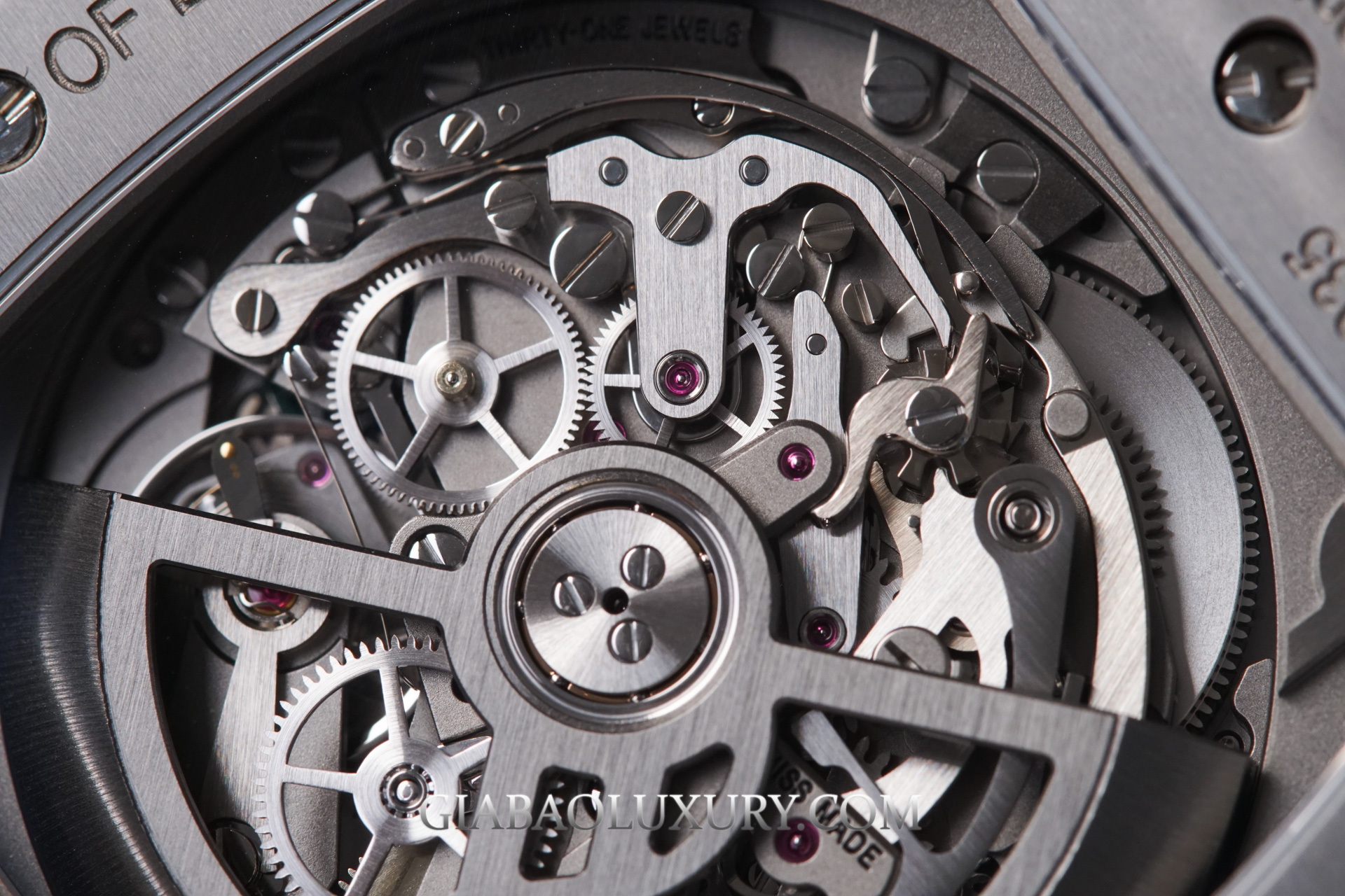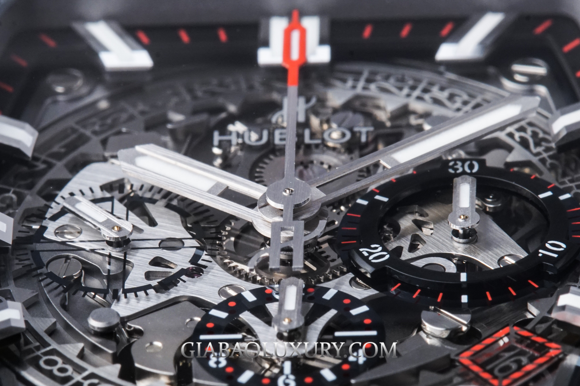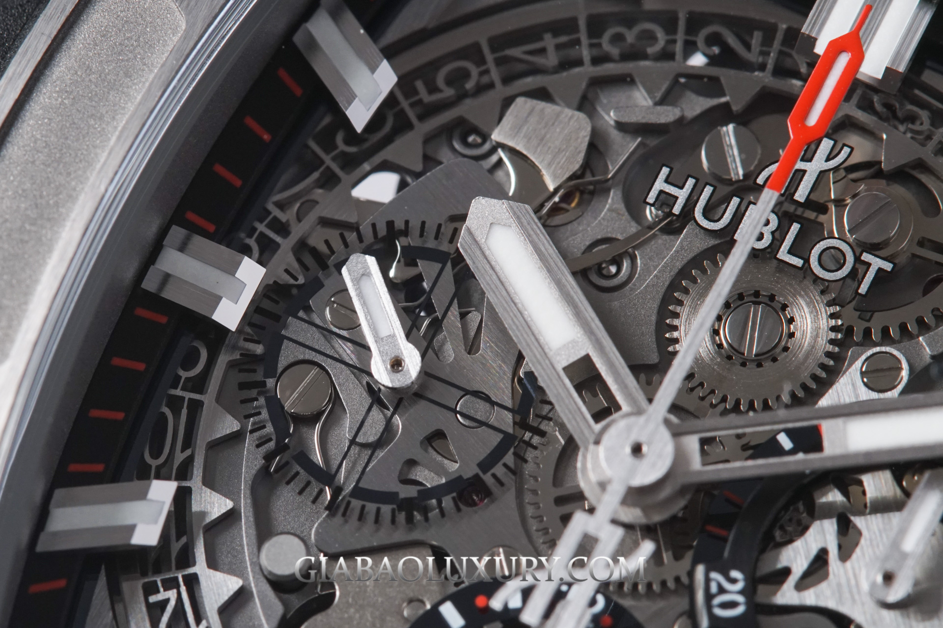 Xử lý được điểm yếu, tất nhiên Hublot phải đẩy mạnh thêm điểm mạnh của mặt số Skeleton. Chúng ta có thể quan sát từng chi tiết, bánh răng chuyển động phía sau mặt số, và đặc biệt là tính năng Chronograph. Mỗi lần nhấn nút, người dùng có thể quan sát được từng lẫy nhỏ di chuyển, từng bánh răng khớp nối vào nhau để vận hành tính năng bấm giờ này.