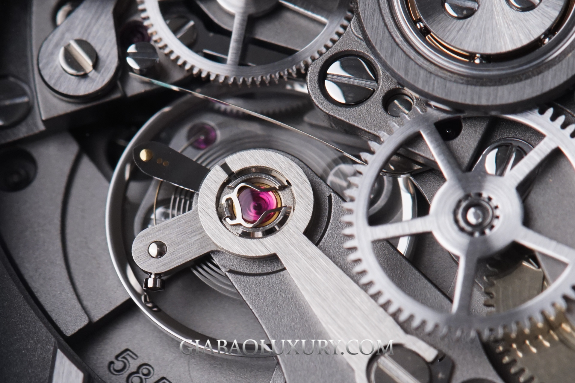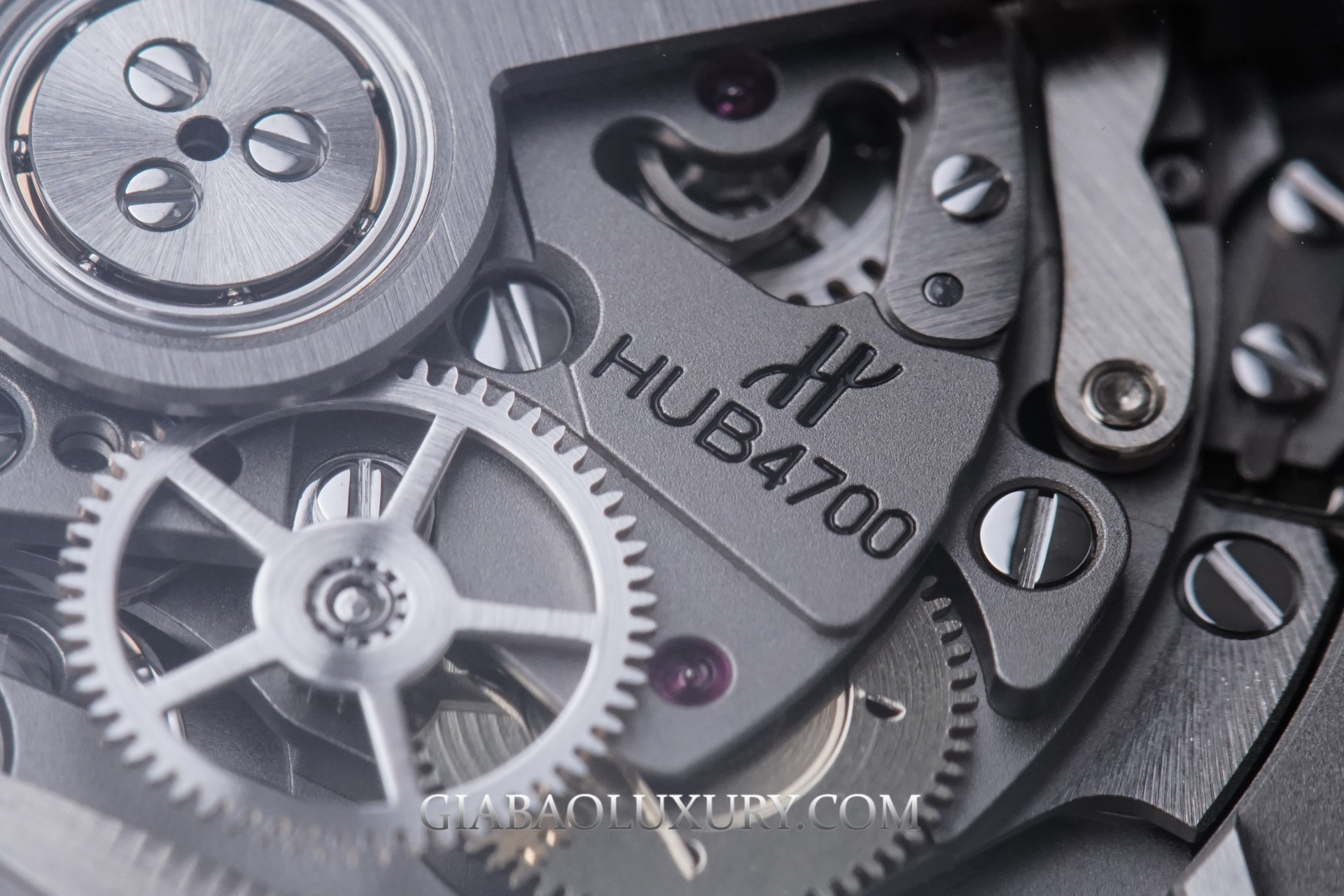 Mặc dù có phần lõi là máy El Primero, nhưng gần như chúng ta không thể nhận ra bộ máy này nếu quan sát từ phía sau, đơn giản là vì Hublot đã gần như đại tu toàn bộ về ngoại hình cho bộ máy. Phần lớn các chi tiết được mạ Rhodium xám đen, xử lý xước mờ tạo cảm giác hiện đại hơn rất nhiều, thay vì những đường vân Cotes de Geneve hay Perlage truyền thống.