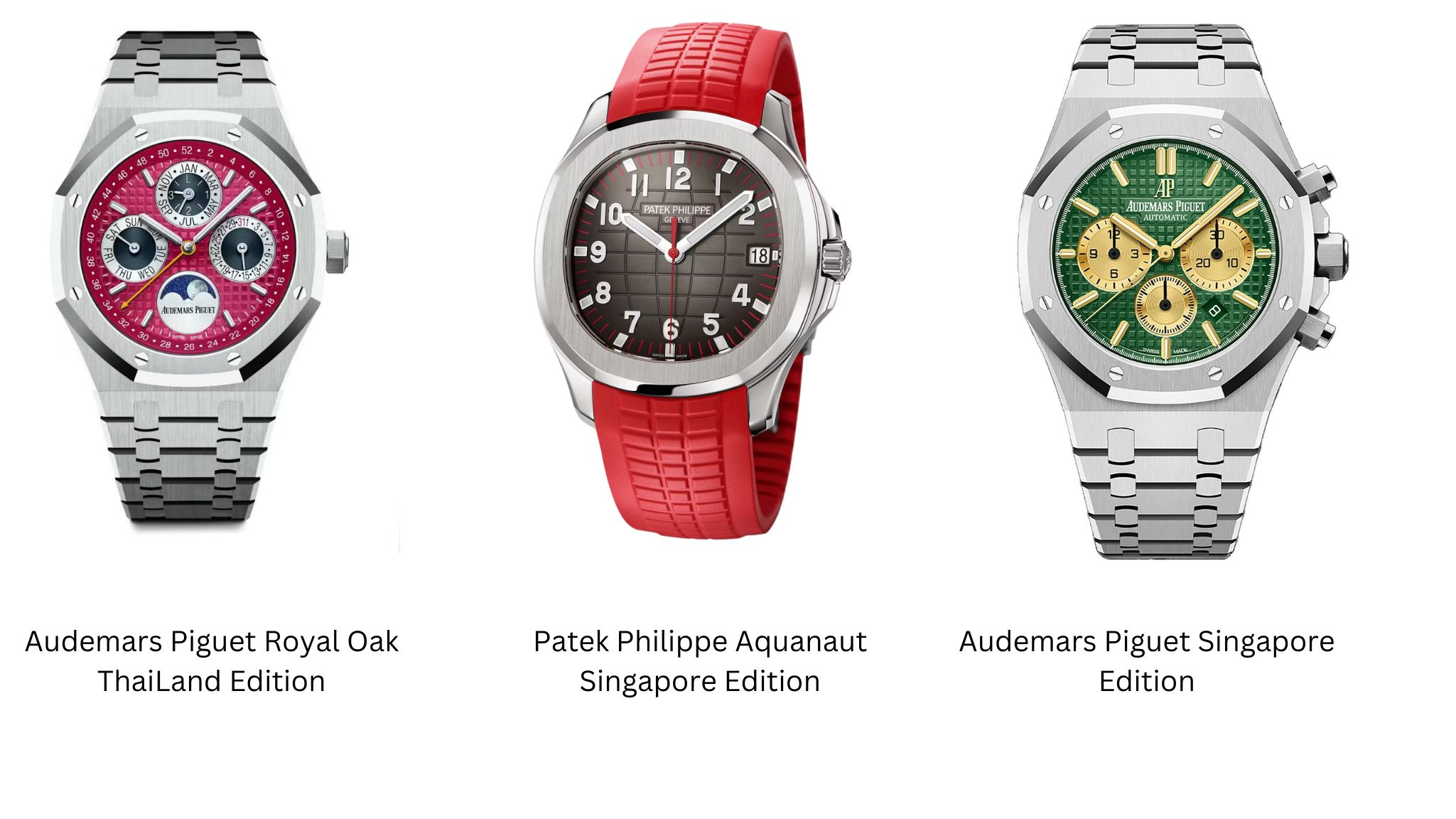Nhiều thương hiệu đồng hồ cao cấp đã làm những chiếc đồng hồ thể thao xa xỉ lấy cảm hứng từ quốc gia như Thái lan, Singapore, Trung Quốc