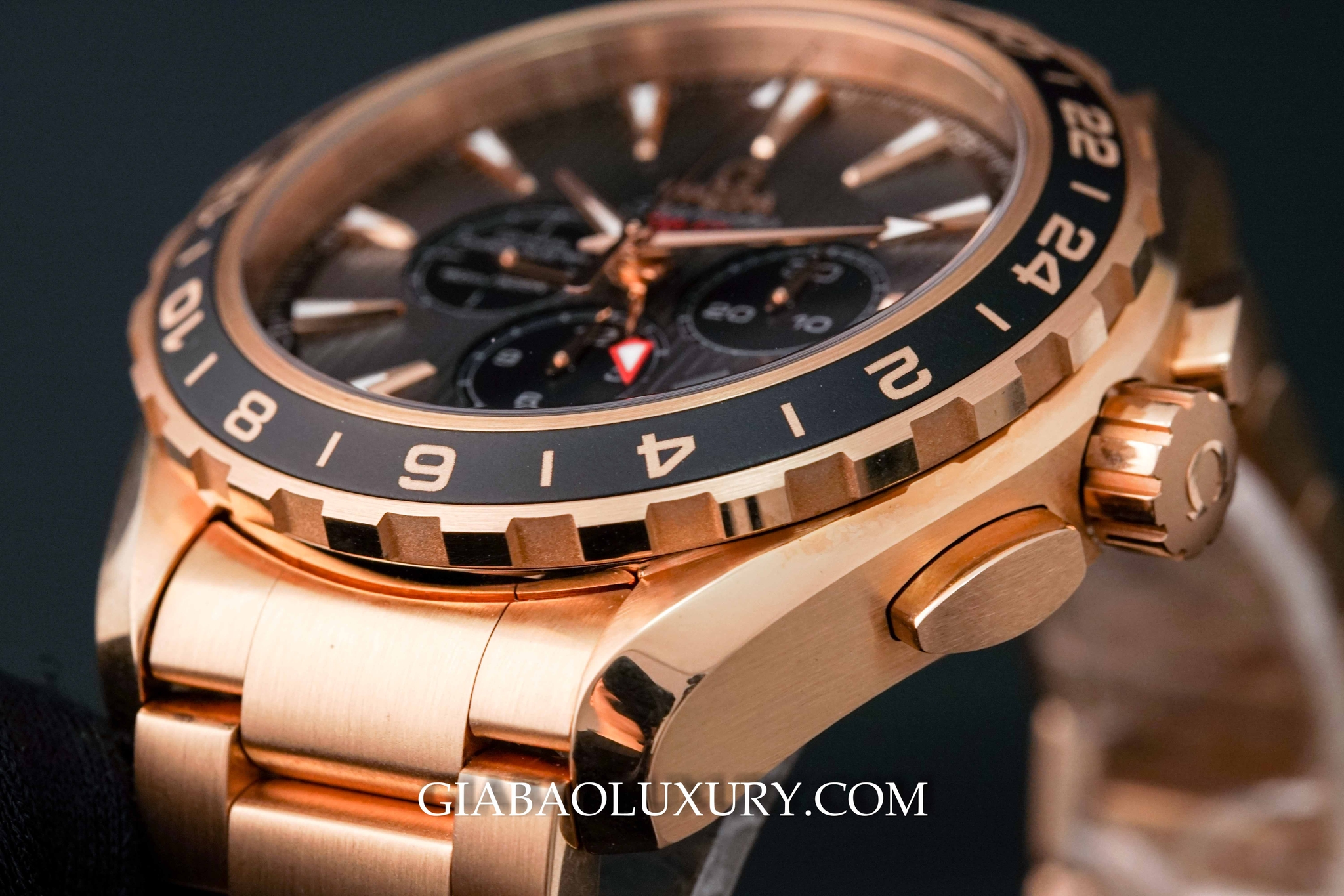 Và chiếc Omega Seamaster Aqua Terra 150M Co-Axial GMT Chronograph 44mm có trên tay Gia Bảo Luxury cũng không phải là một trường hợp ngoại lệ, khi sở hữu một bộ máy đập liên hồi bền bỉ, sản xuất in-house, đầy cải tiến đã được bảo vệ bởi lớp vỏ khung vàng hồng chắc chắn cùng mặt số hiện đại, thể hiện một vẻ đẹp đầy nam tính.